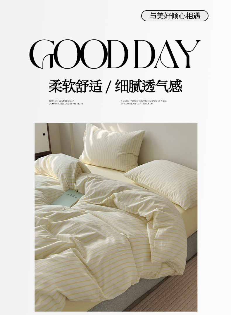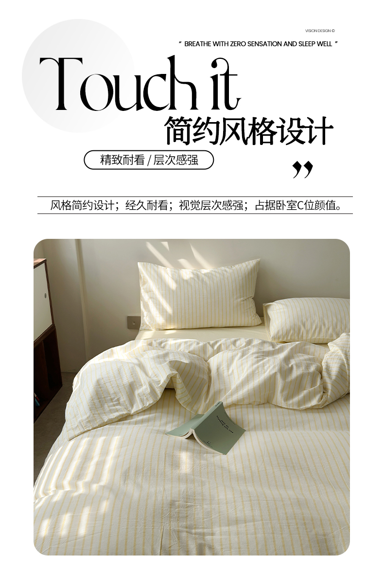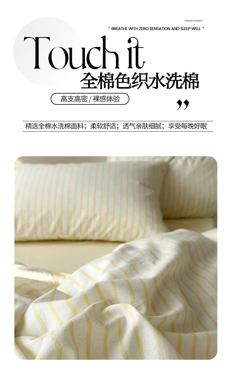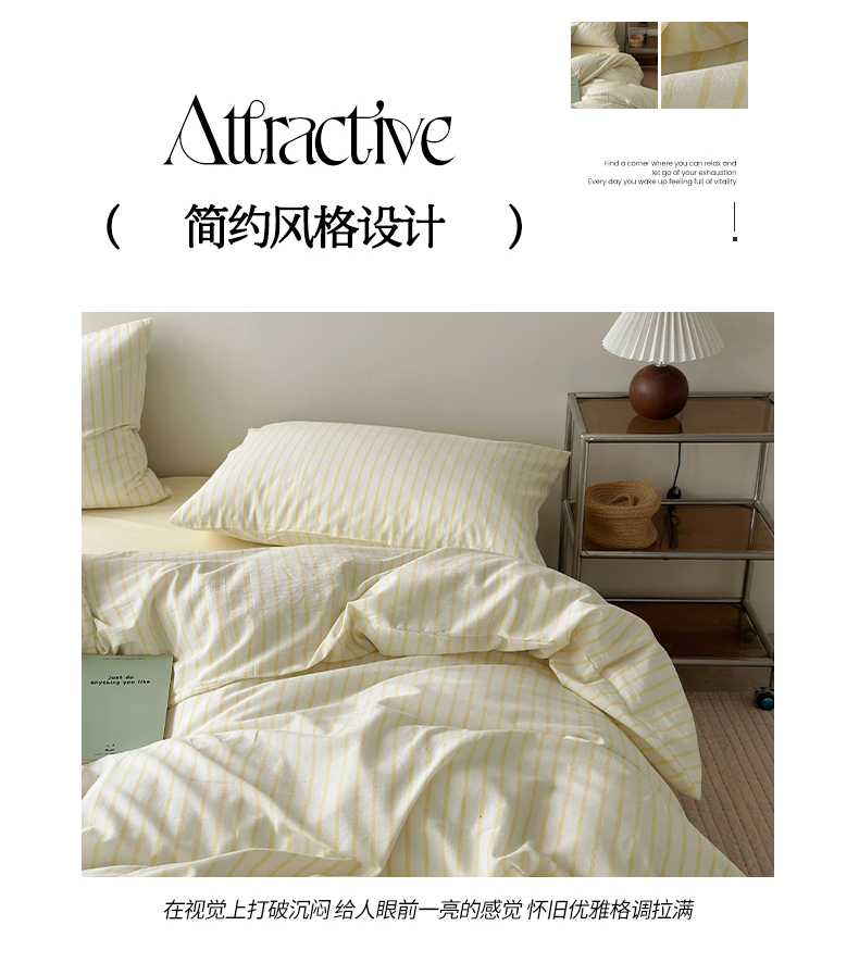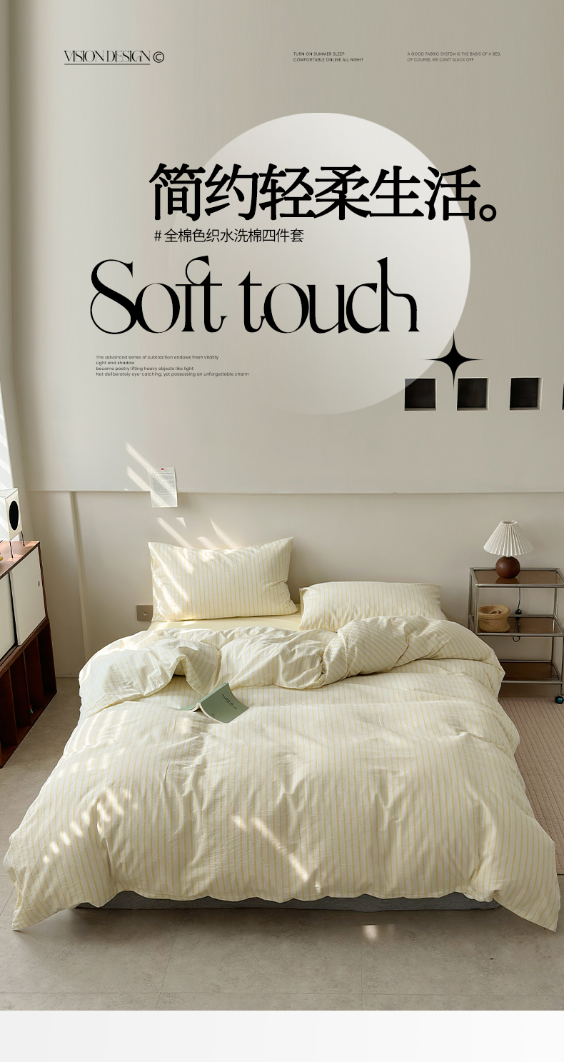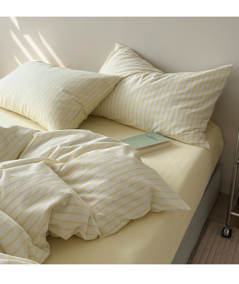 商品名称:水洗的故事 2025新款全棉色织水洗棉四件套 简序-米黄
