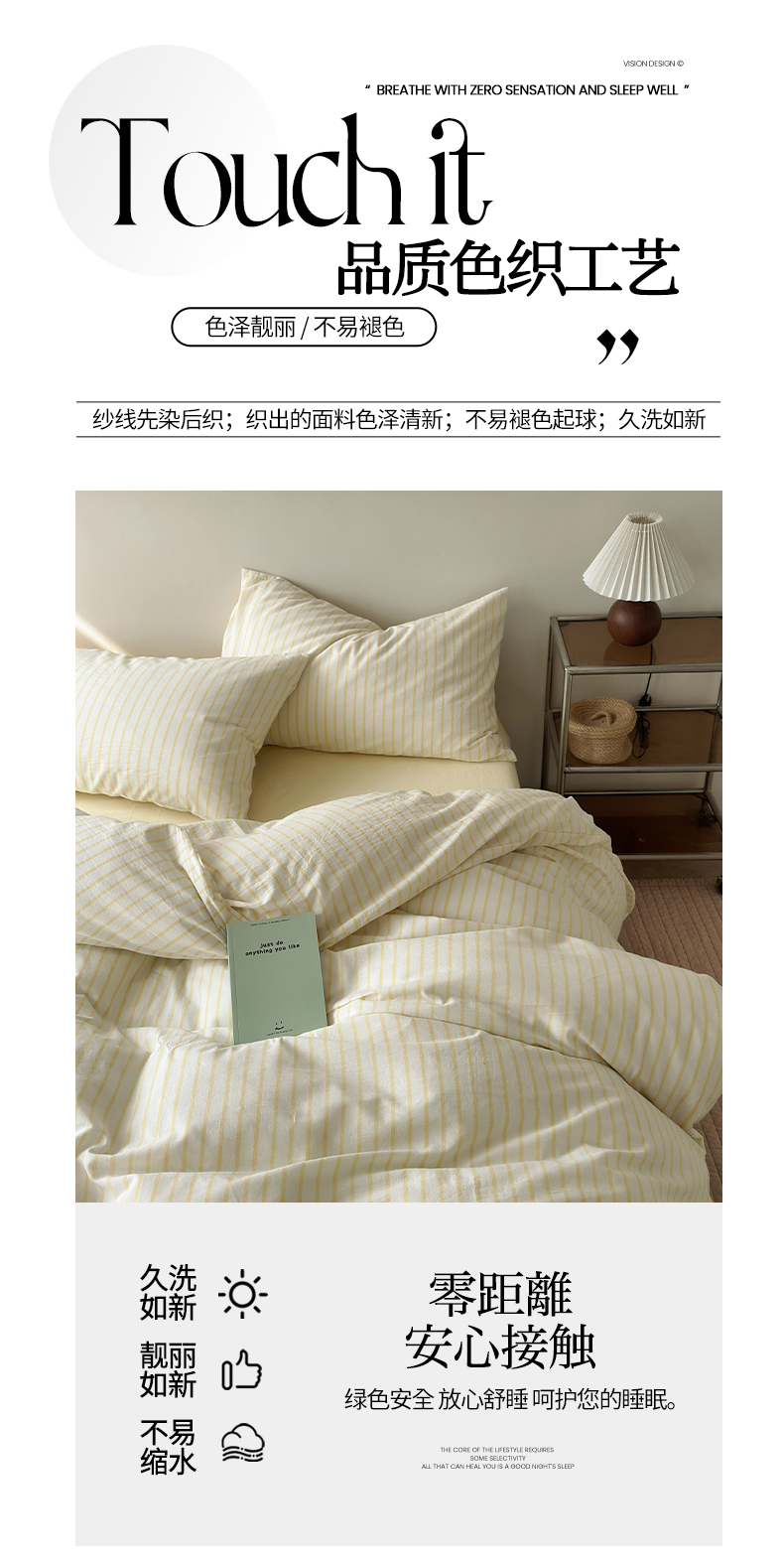 (总)水洗的故事(原有乐家) 2025新款秋冬全棉贡缎色织提花条纹款四件套,从简-灰,从简-咖,从简-奶橘,森沐,织麦