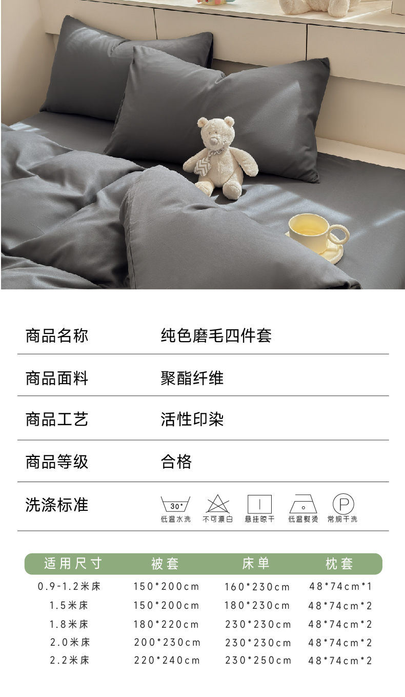 当前位置: 91家纺网 > 商品网购 > 床品套件 > 四件套 > 磨毛活性四件套 > 可可家纺 2025新款ins风纯色磨毛简约水洗棉四件套亲肤床单被套三件套 纯深灰
