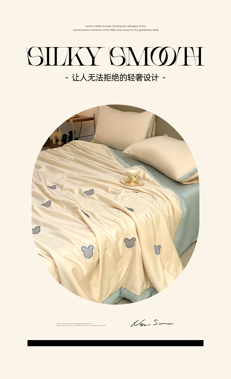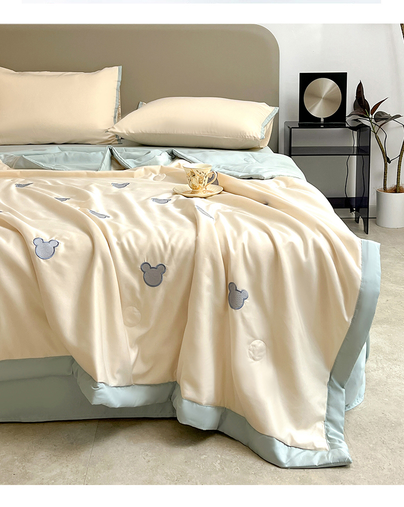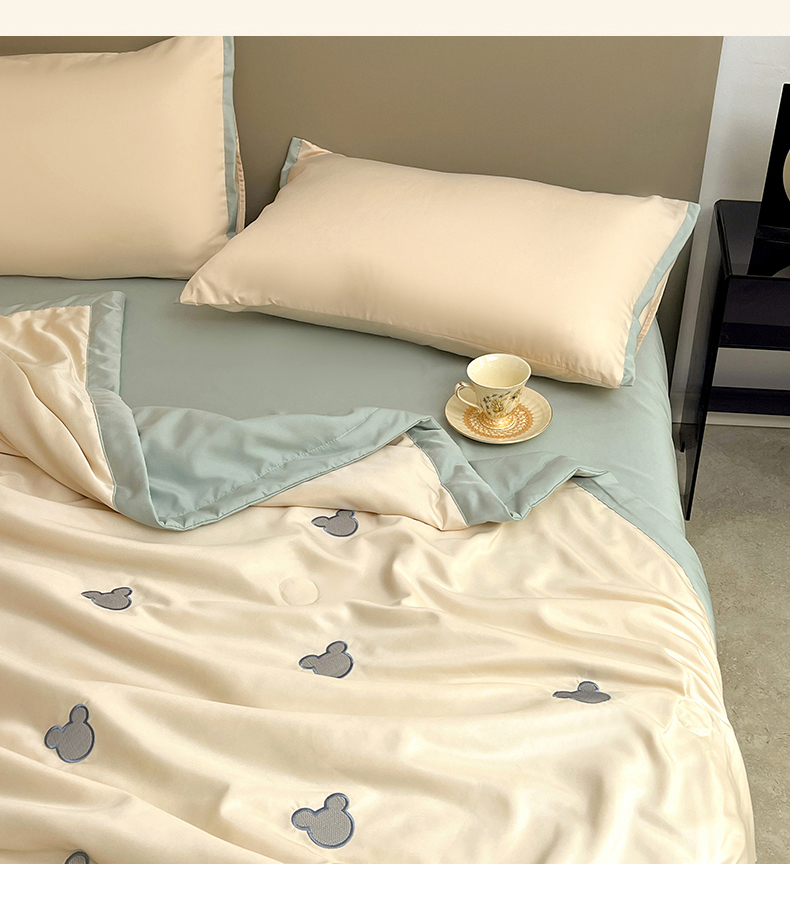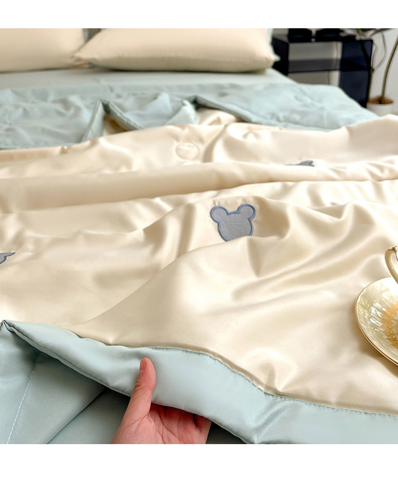 妖妖家纺 2025春夏新款水洗冰丝绣花夏被夏凉被空调被四件套 无脸熊