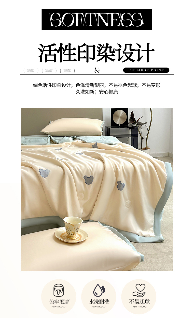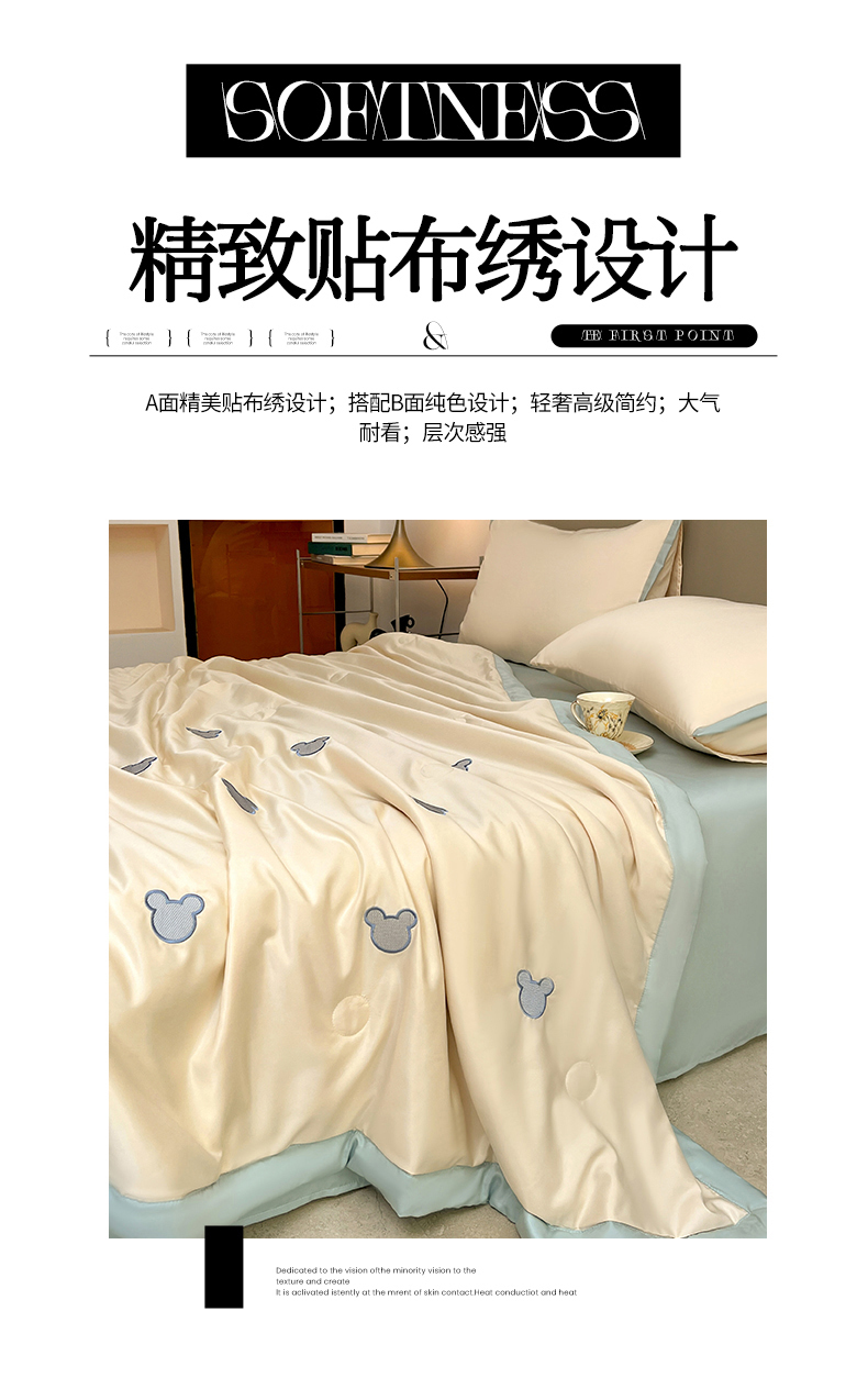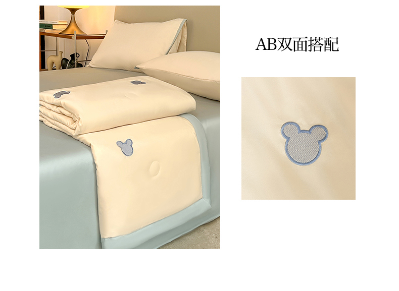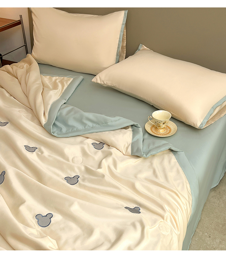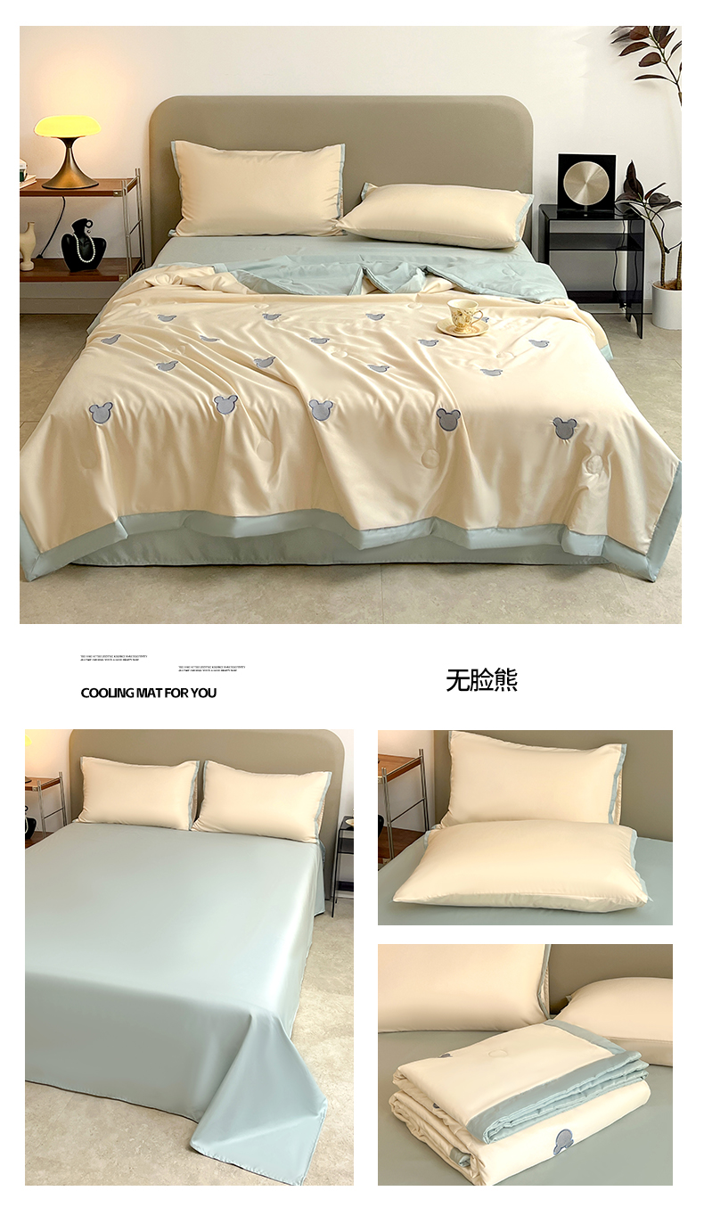 商品名称:妖妖家纺 2025春夏新款水洗冰丝绣花夏被夏凉被空调被四件套 无脸熊
