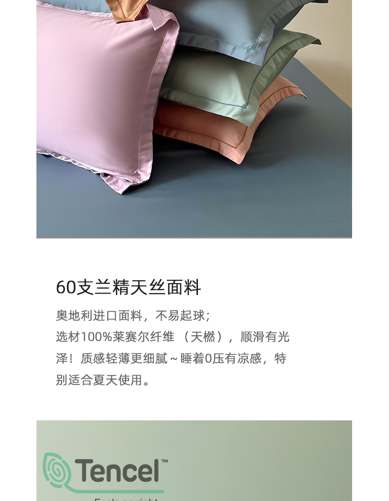 商品名称:百寐 2025夏季凉感60S进口兰精天丝枕套50*80/40*60枕芯保护套莱赛尔纤维 冰咖啡
