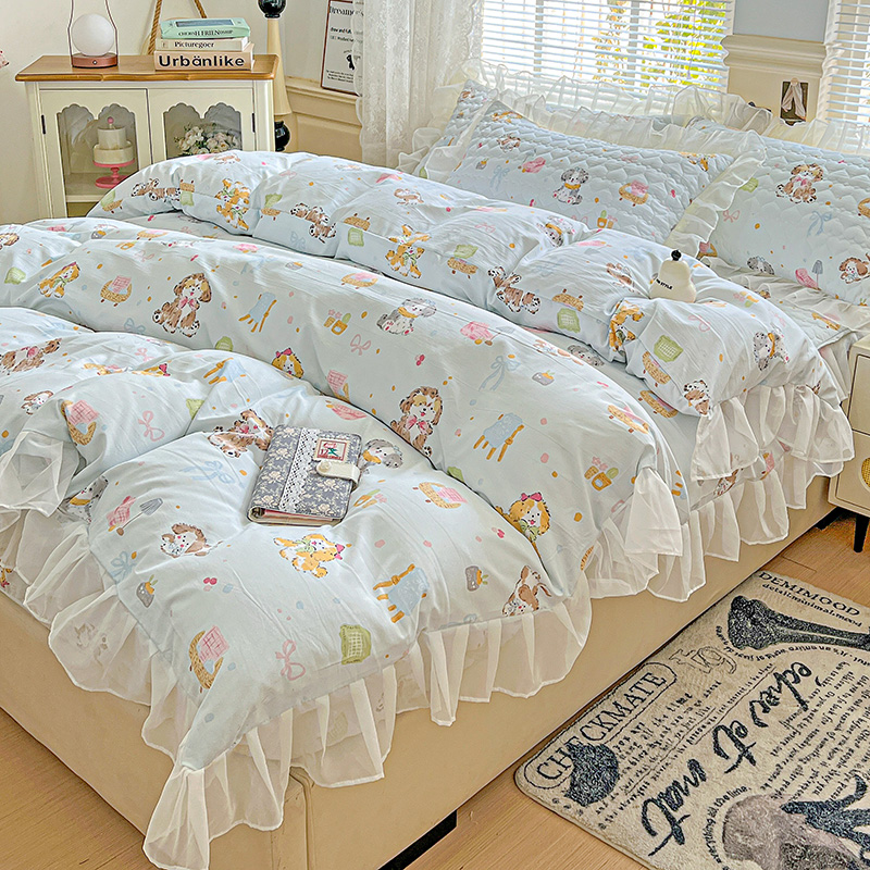 (总)艾橙家纺 2025新款雪纺花边加棉床笠款单品四件套-单床笠,妆立春风,半旧时光,彩色波点,丹妮狗,恐龙日记,茉莉兔,糖果草莓,微风许甜,心彩童话,樱之恋