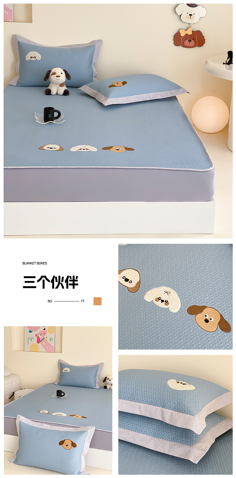 商品名称:(总)由有家居 2025新款原创新品A类PE高凉感分子卡通毛巾绣豆豆凉席三件套