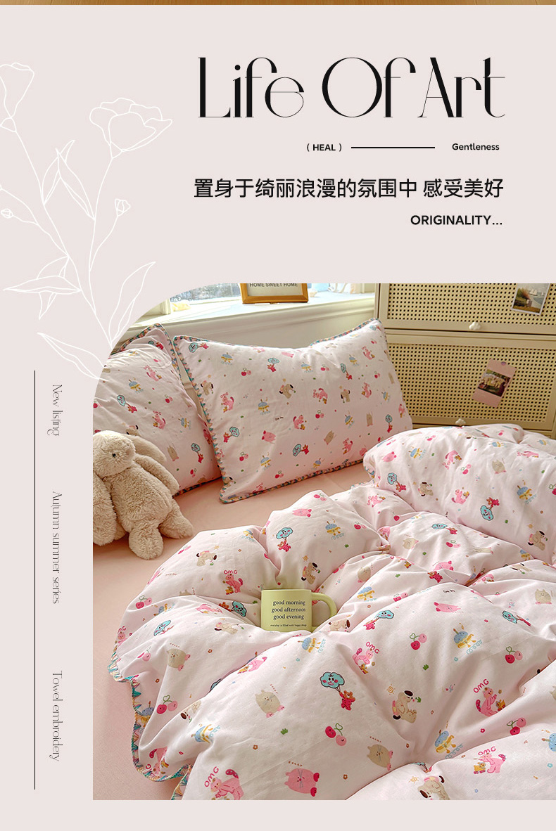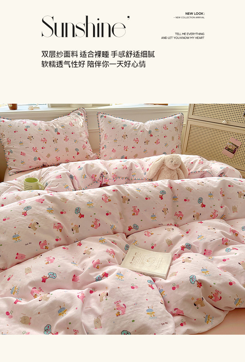 当前位置: 91家纺网 > 商品网购 > 床品套件 > 四件套 > 双层纱四件套 > (提供买家秀 爆款花型 不断货)2025新款A类全棉双层纱四件套 开心派对
