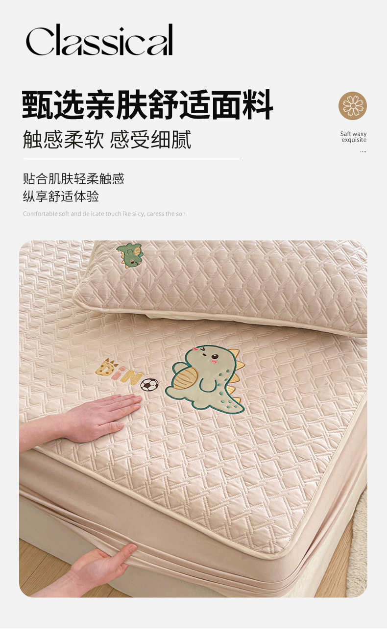 商品名称:万盛家纺 2025新款夹棉恐龙刺绣床笠 恐龙-菱形格 卡其