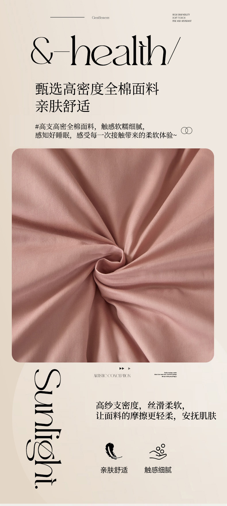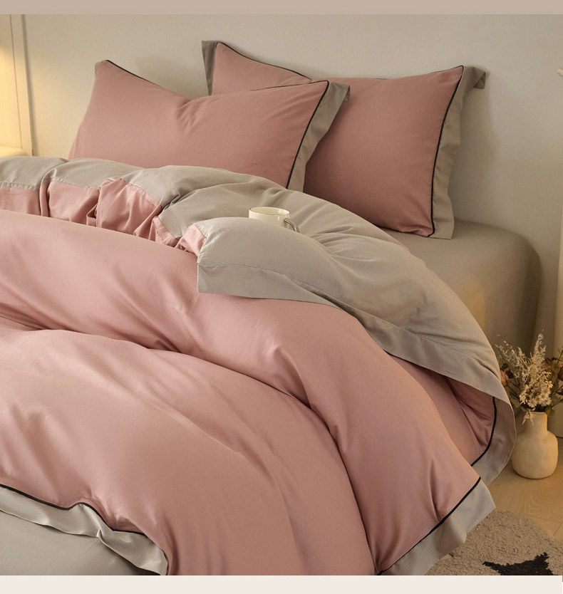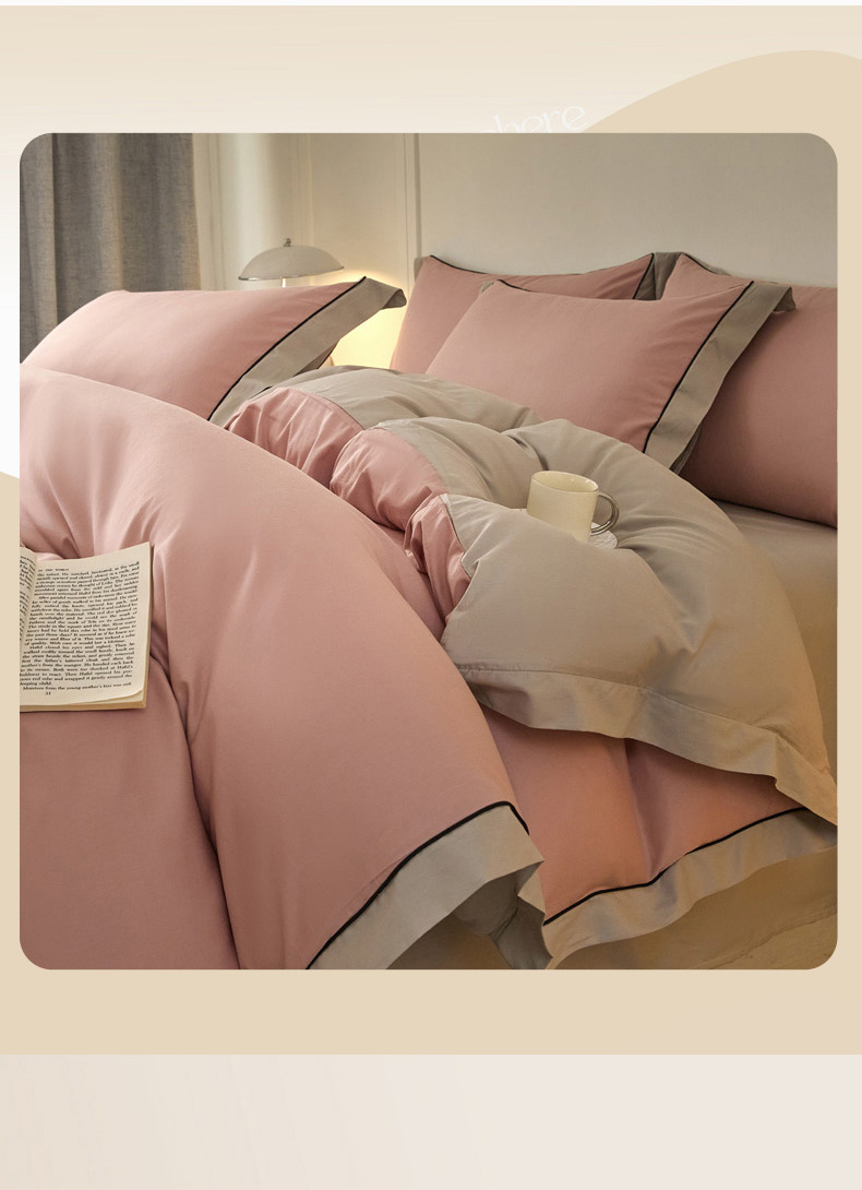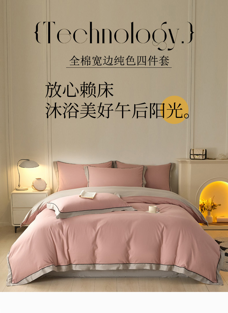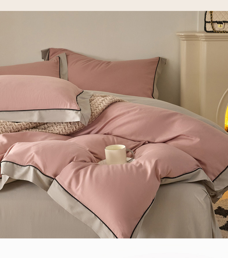 商品名称:万盛家纺 2025新款全棉宽边麻绳拼角四件套 豆沙粉-烟灰