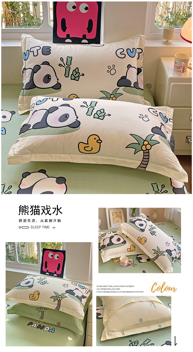 商品名称:依庭 2025新款全棉印花花卉款四件套单品系列-单枕套 熊猫戏水