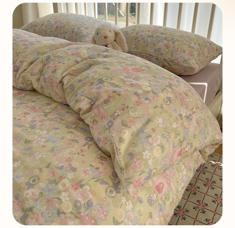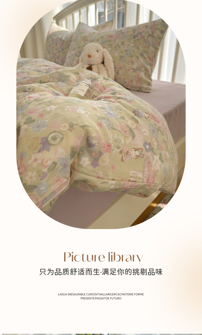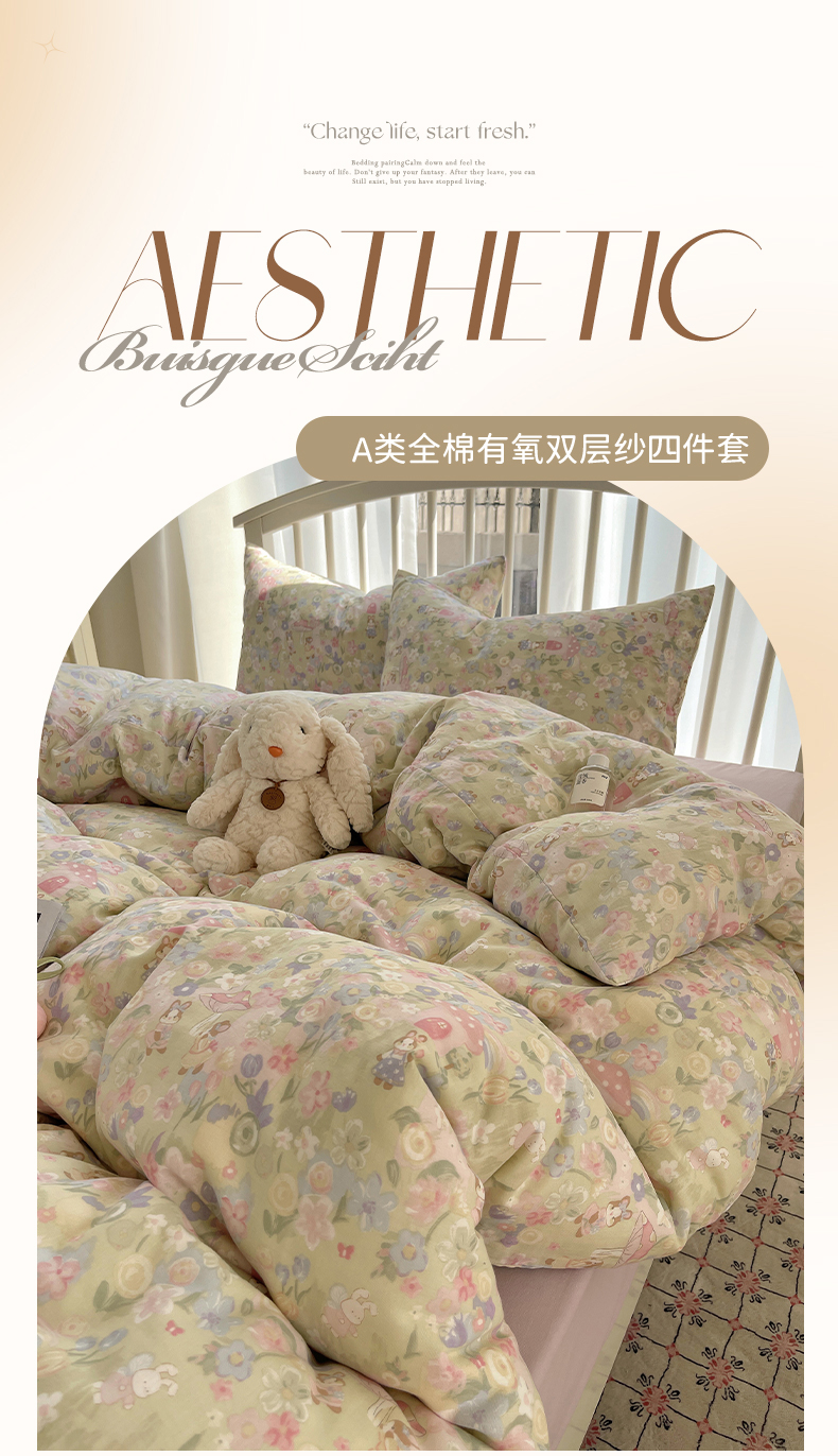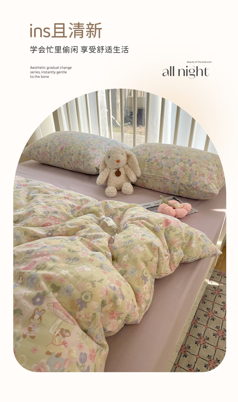 商品名称:瑞莱 2025夏季新款全棉纯棉有氧双层纱四件套 何枝小兔