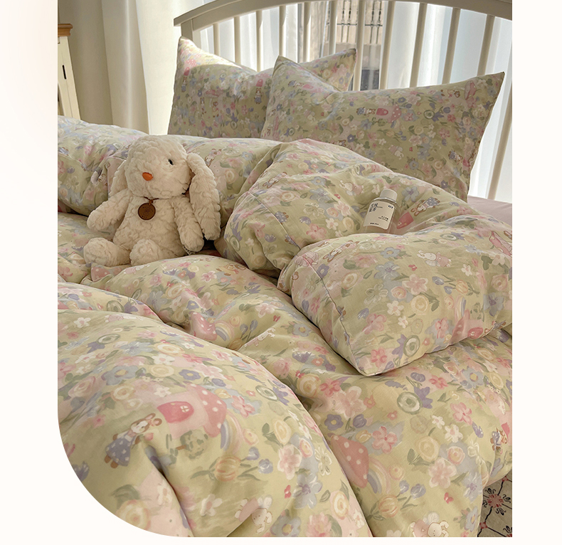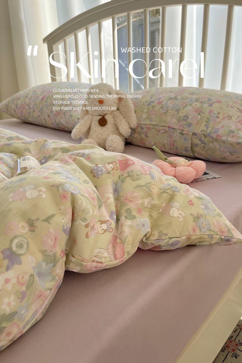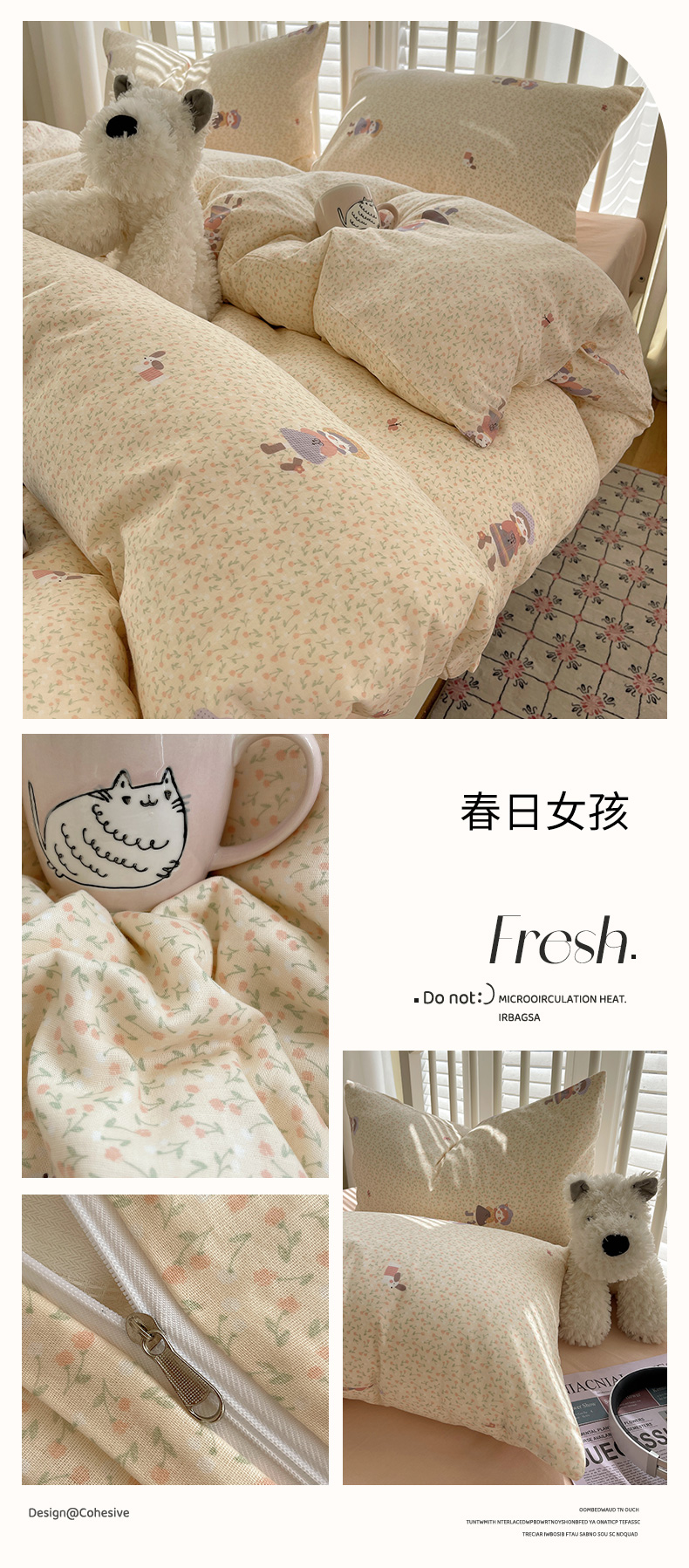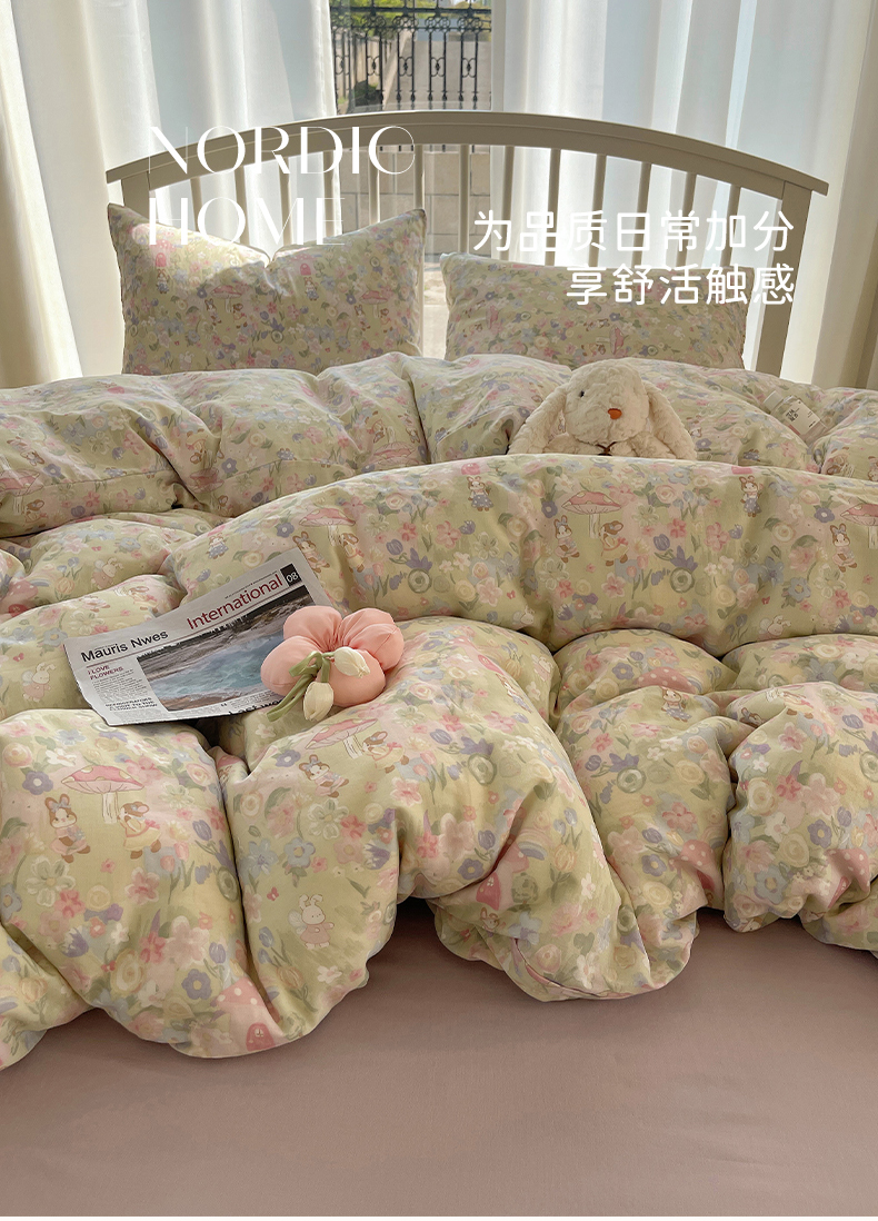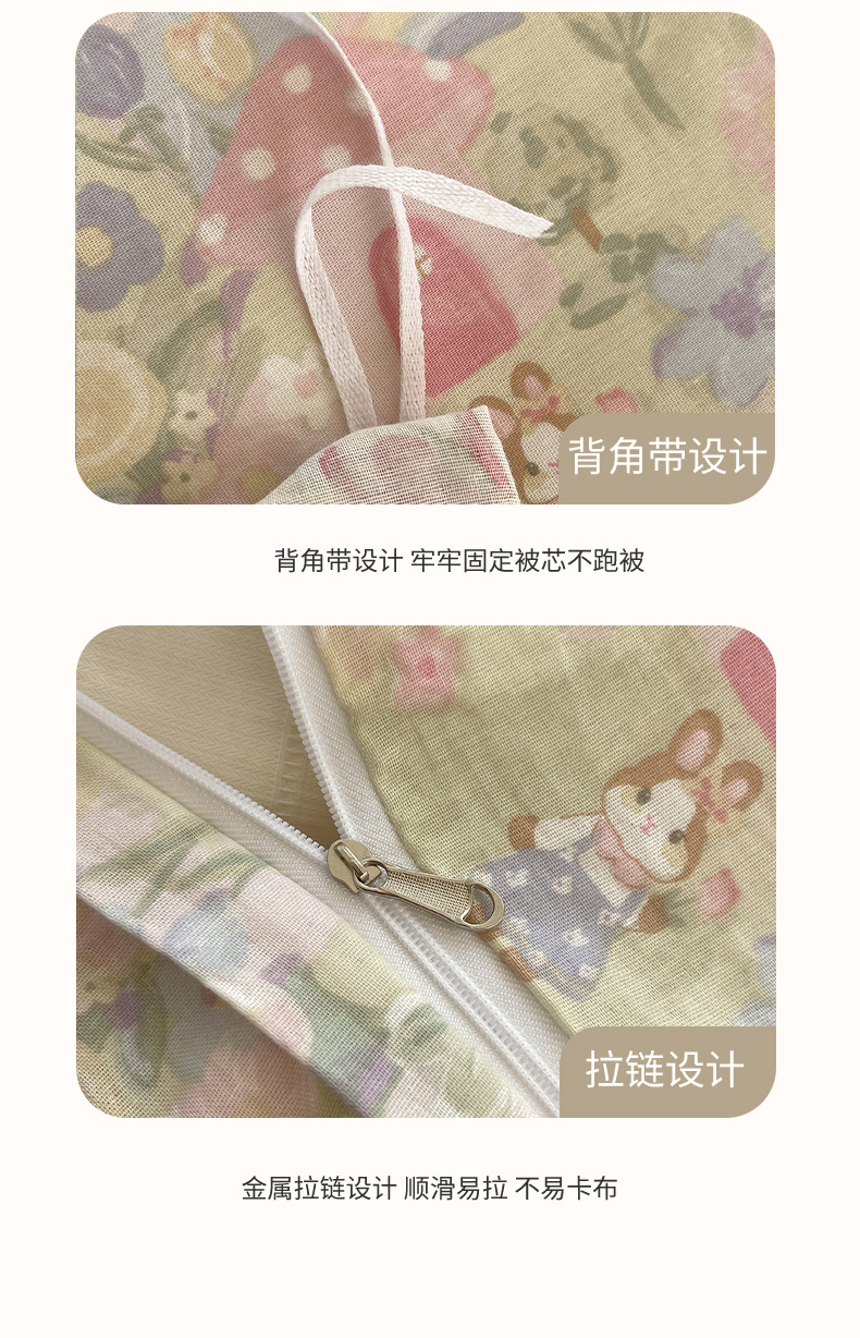 商品名称:瑞莱 2025夏季新款全棉纯棉有氧双层纱四件套 何枝小兔