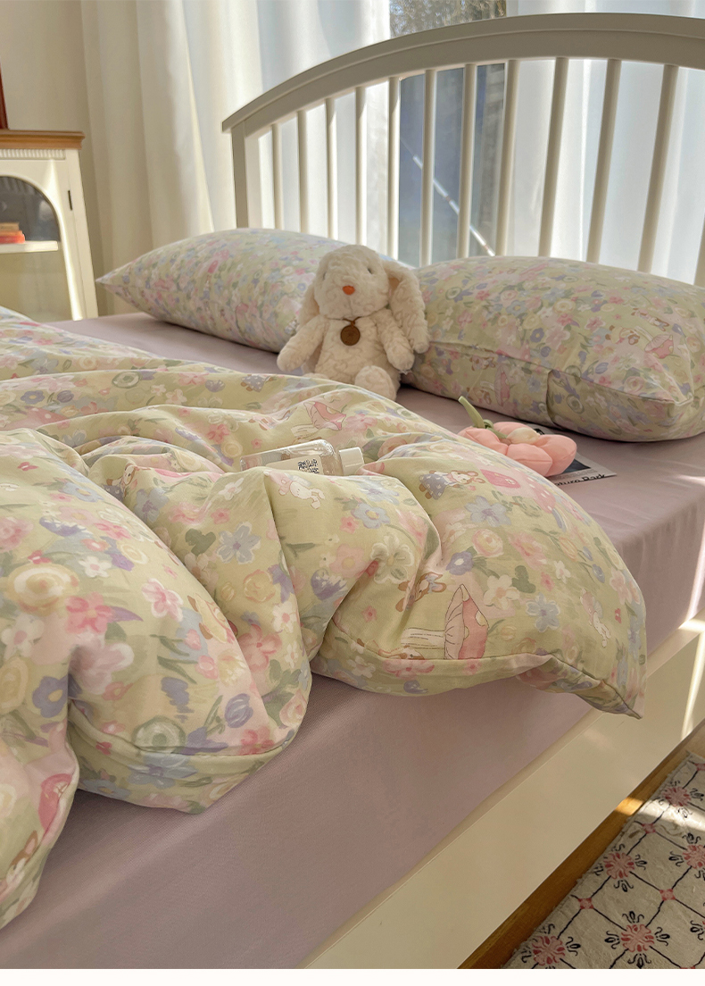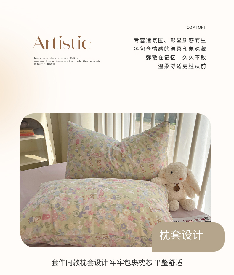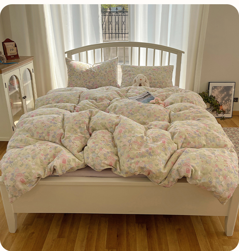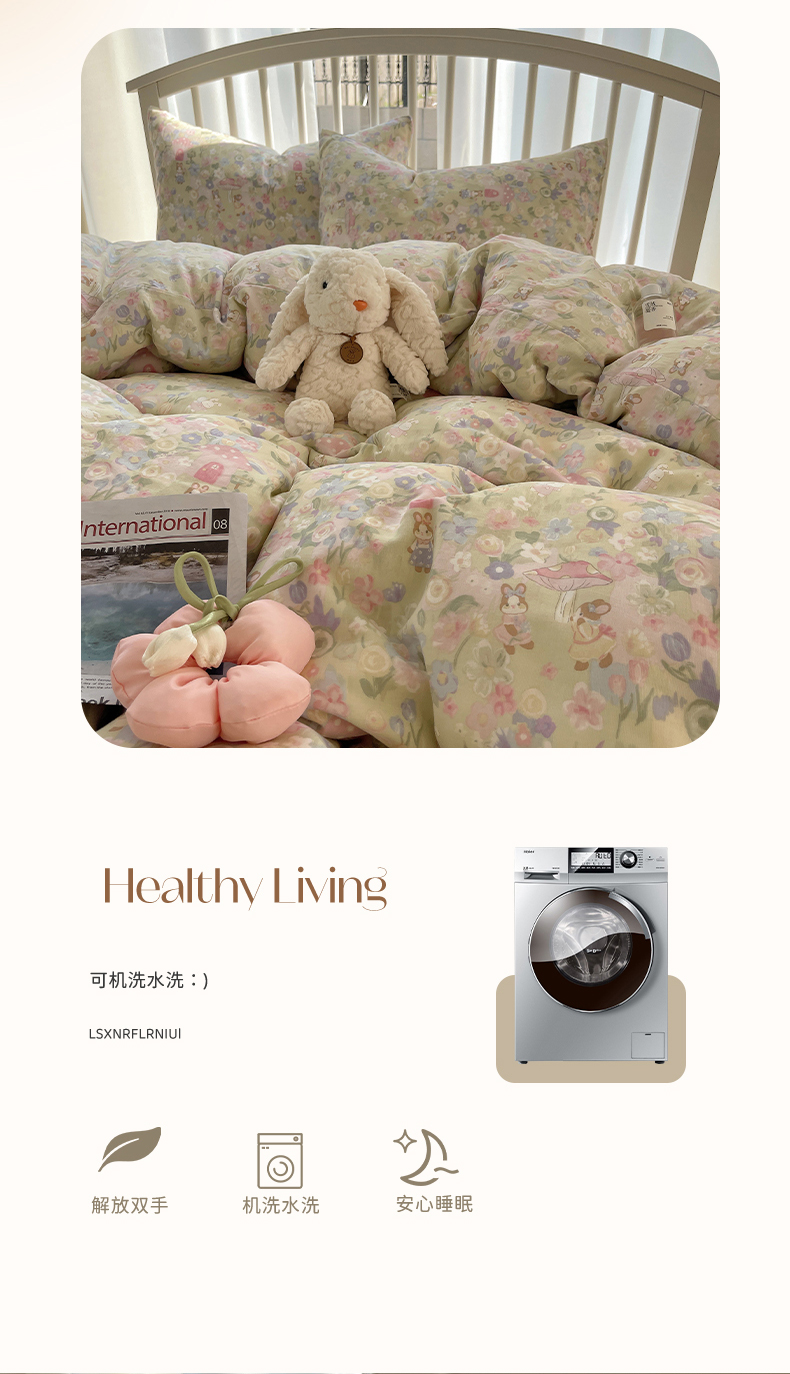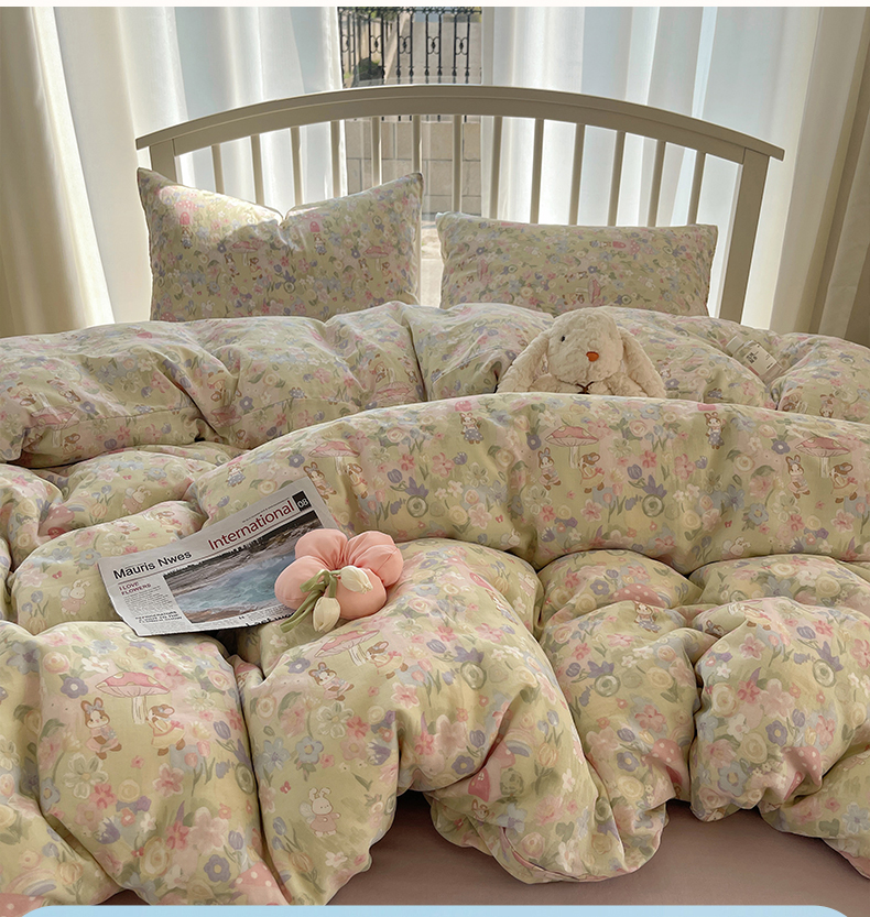 商品名称:瑞莱 2025夏季新款全棉纯棉有氧双层纱四件套 何枝小兔