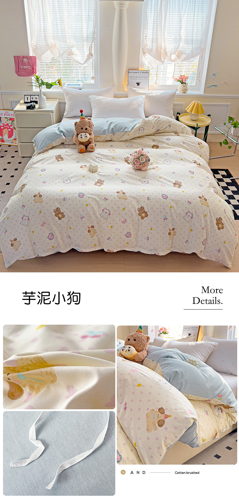 依庭 2025新款全棉印花花卉款四件套单品系列-单被套 芋泥小狗