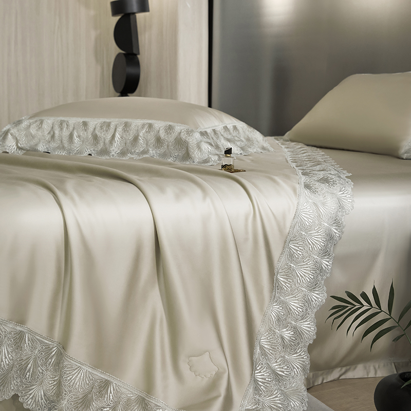 当前位置: 91家纺网 > 商品网购 > 床品套件 > 四件套 > 夏被四件套 > 洽想家 2025春夏新款100S天丝棉蕾丝夏被四件套--沐颜 沐颜 金色
