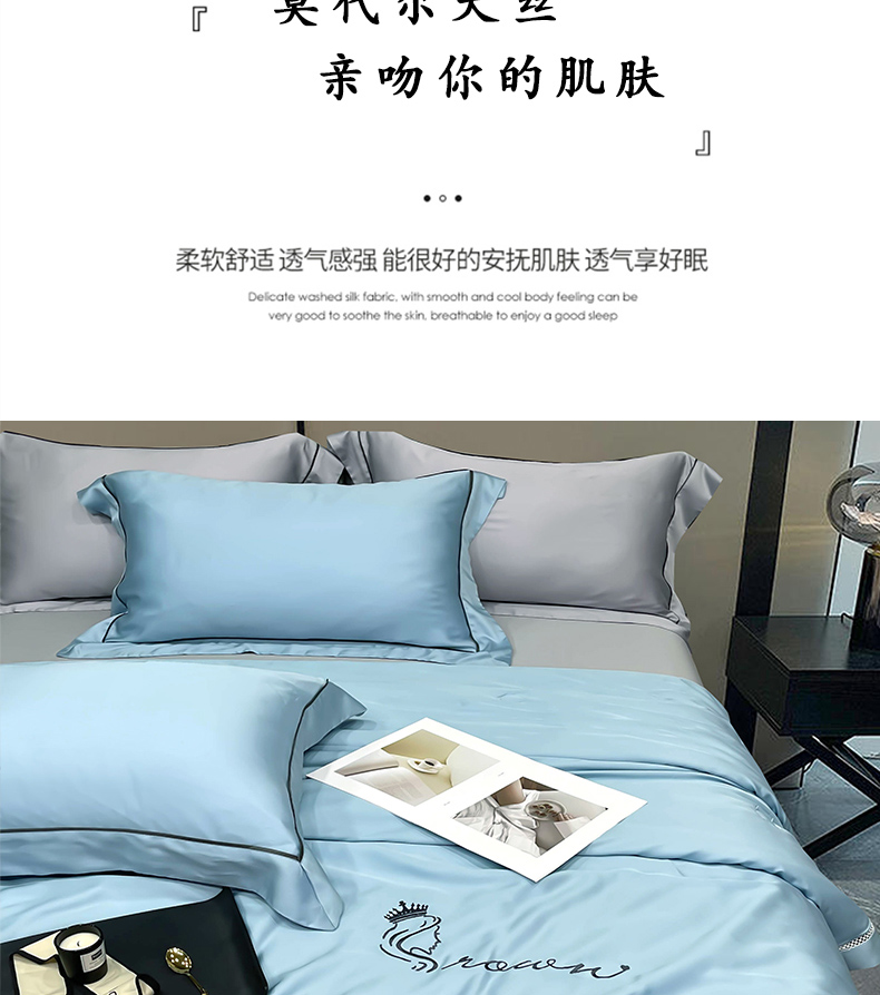 (总)洽想家 2025新款莱赛尔兰精80支天丝纯色系列四件套,风信紫,海天蓝,密豆红茶,茉莉黄,天空蓝,春辰绿,繁星蓝,经典灰,拿铁,水泥灰,天空粉,雾霾蓝紫,婴儿蓝,深灰