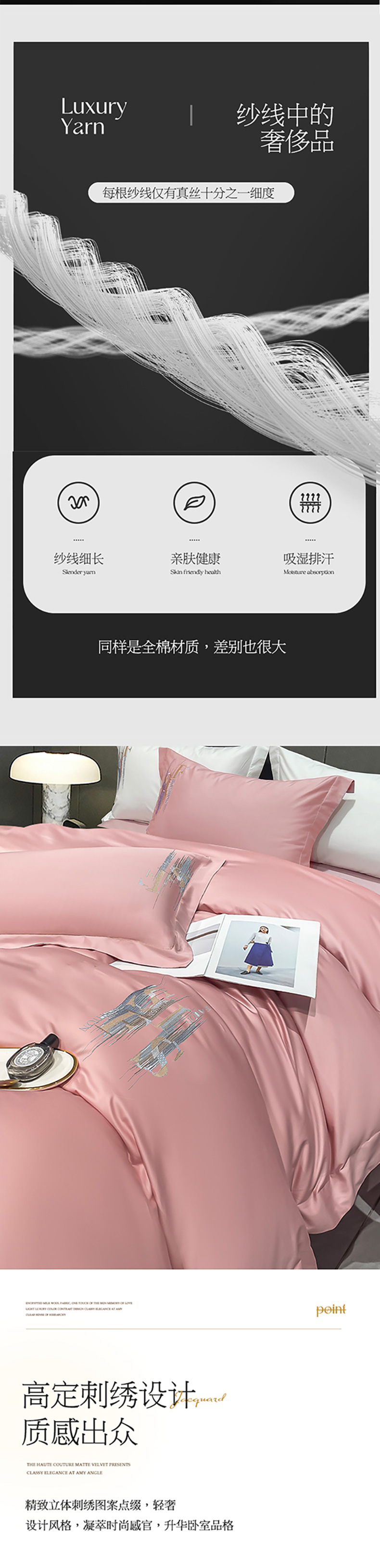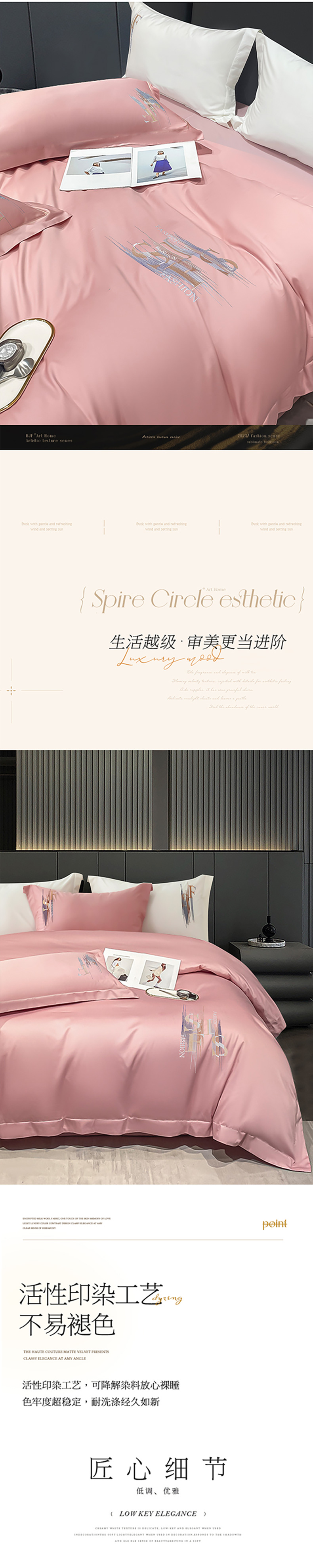 洽想家 2025新款100支长绒棉刺绣四件套--时光痕迹 时光痕迹-豆沙粉