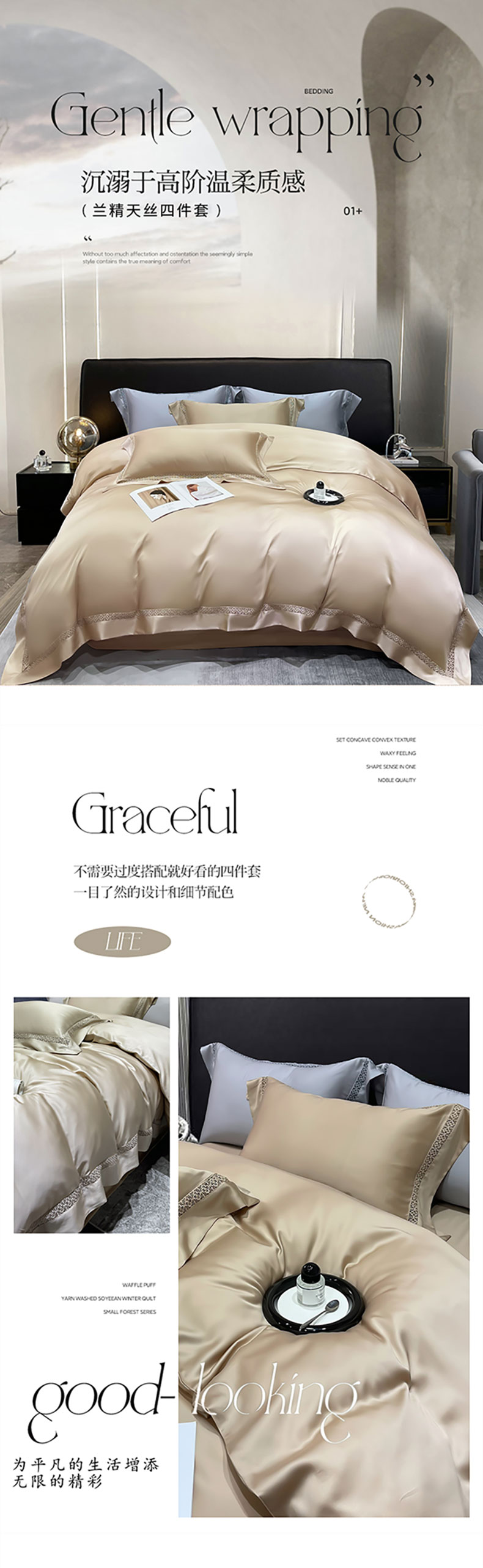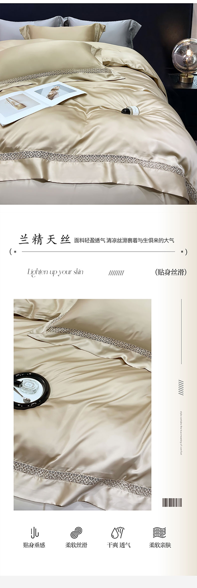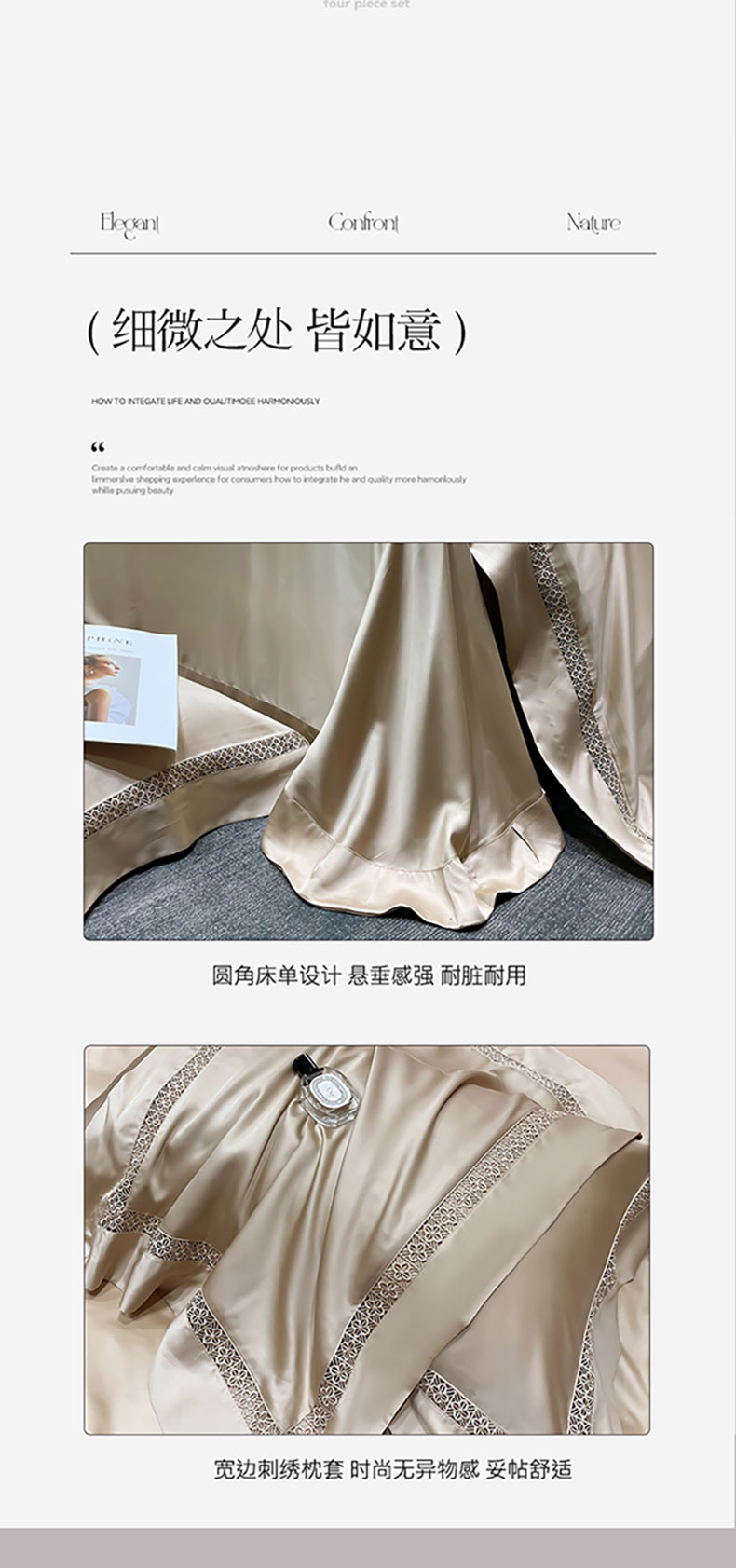 洽想家 2025新款80支天丝镂空瑾系列四件套 瑾-米咖棕