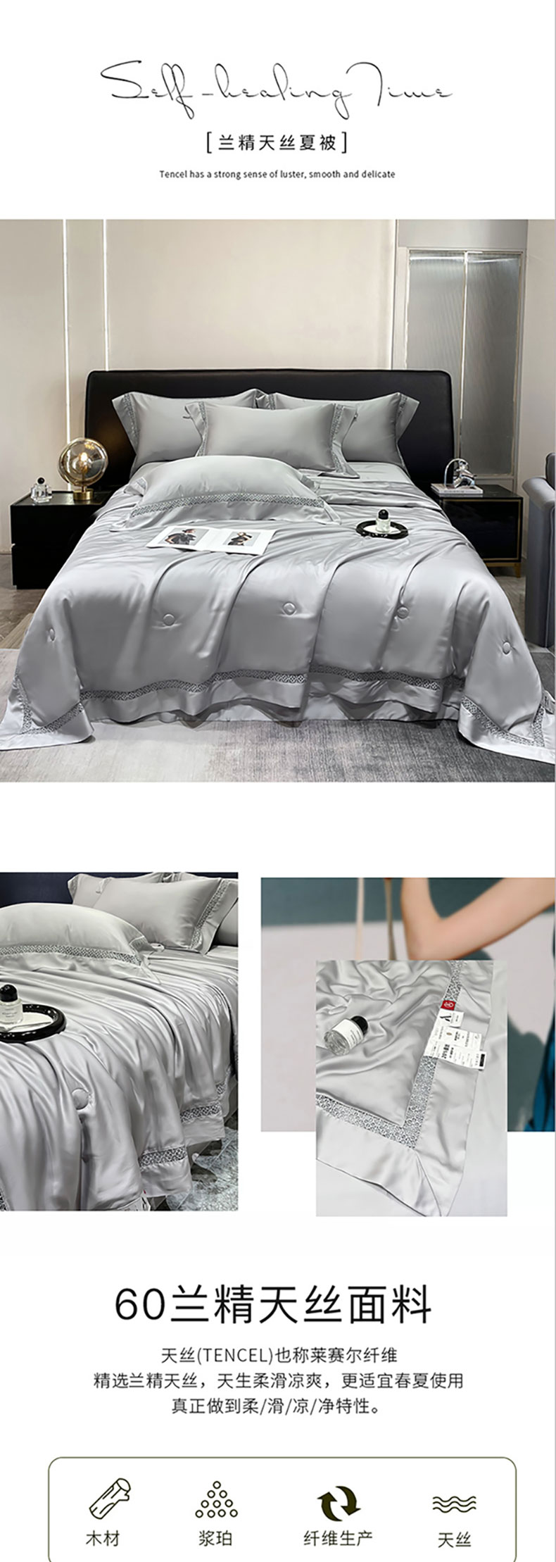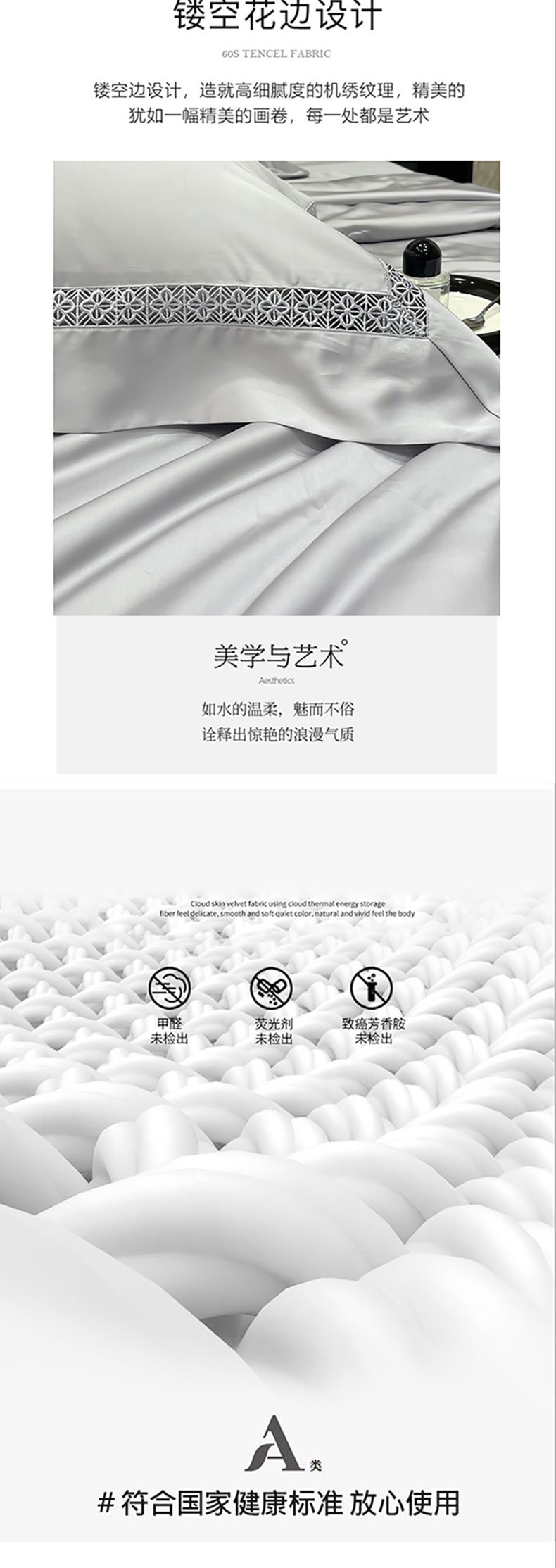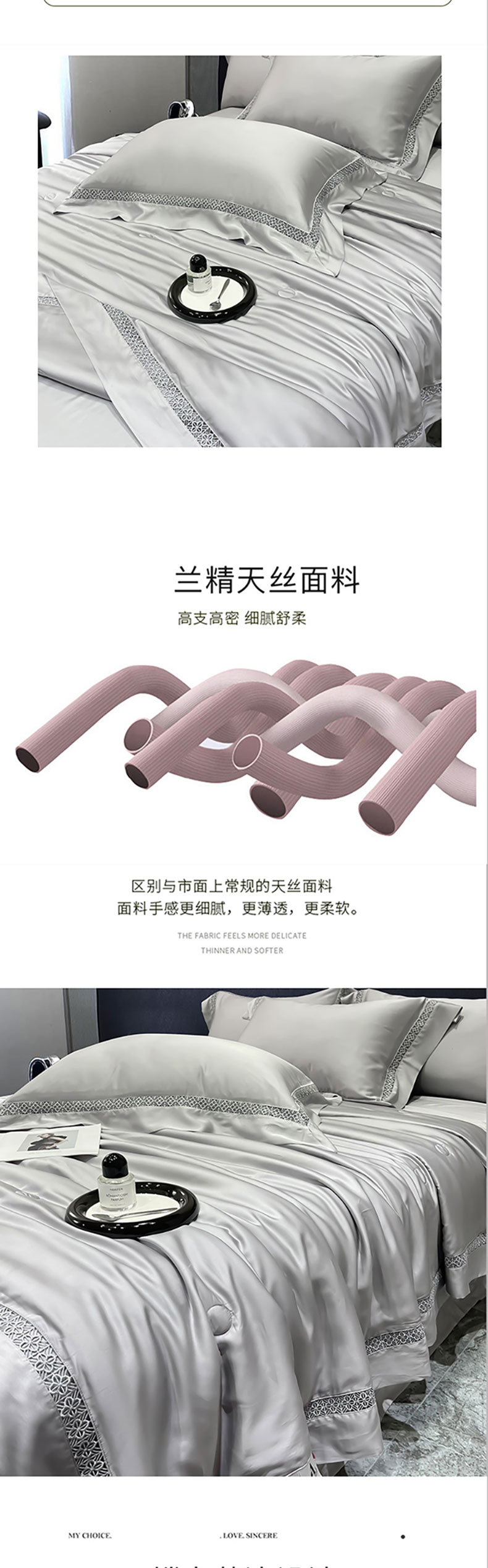 商品名称:洽想家 2025新款80支天丝镂空瑾系列夏被四件套 瑾-经典灰