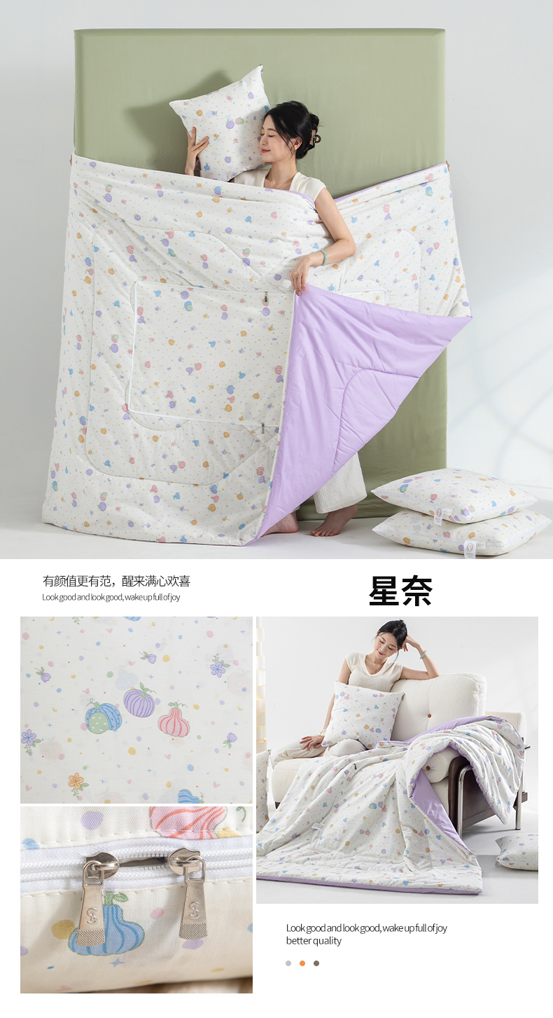 商品名称:照世家纺 2025春夏新款全棉纯棉印花A类抱枕被 星奈 40x40展开105x150