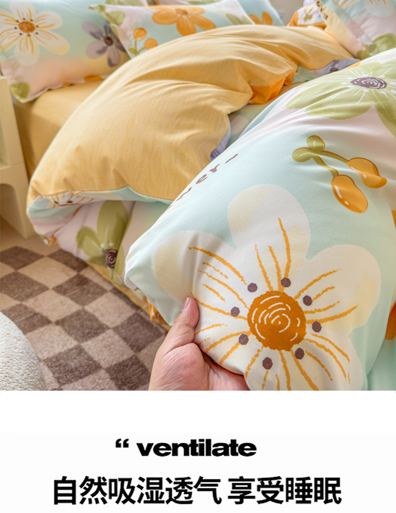 • 91家纺网 家纺一手货源 找家纺 佑佳家纺 2025新款铂金棉芦荟棉单被套「支持定做各种尺寸」 浅浅花漾