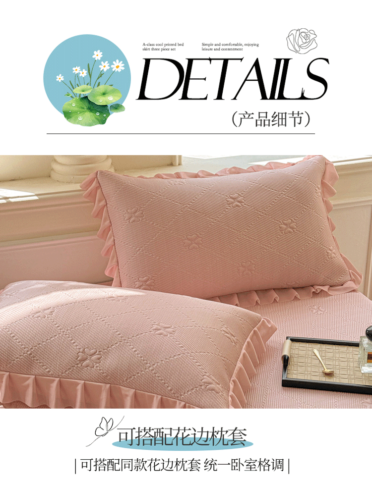 商品名称:漫布云 2025新款凉豆豆PE凉感丝花边床裙款冰豆豆凉席床盖三件套 樱桃-薄荷绿