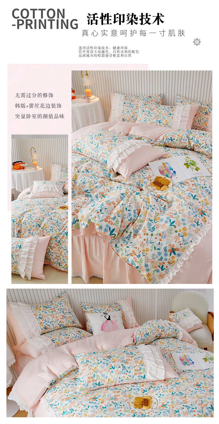 (总)亲亲公主 2025全棉蕾丝花边床裙公主风四件套