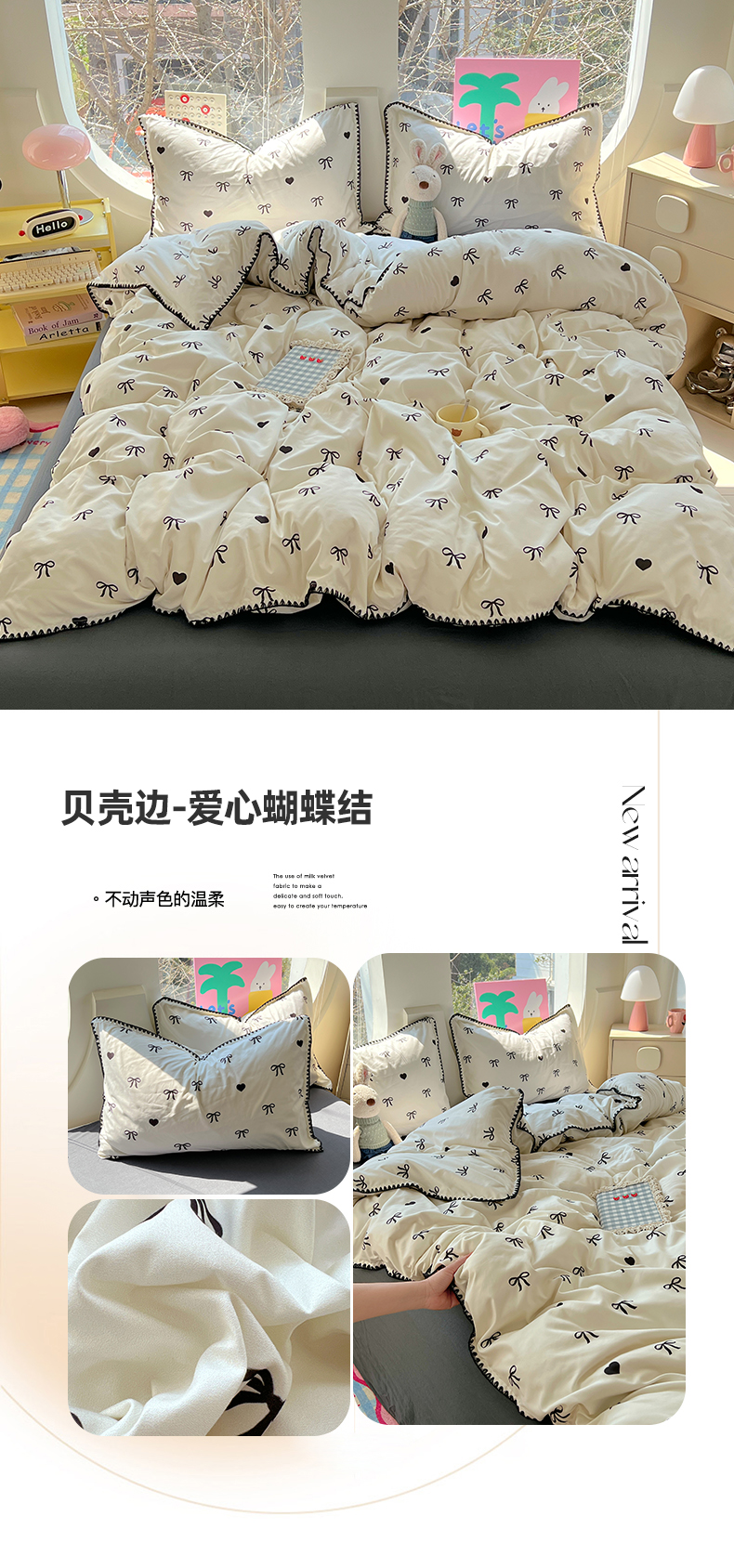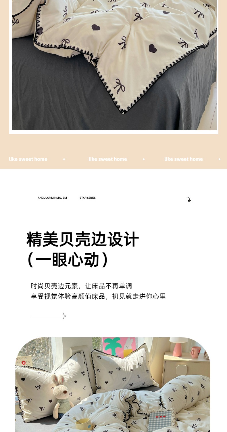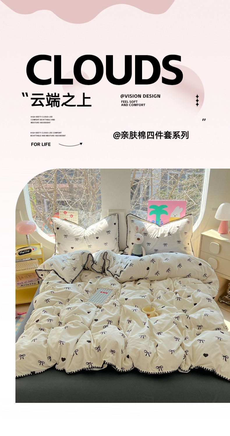 当前位置: 91家纺网 > 商品网购 > 床品套件 > 四件套 > 其它四件套 > 思诺羽床笠 2025新款亲肤棉贝壳花边四件套 贝壳边-爱心蝴蝶结