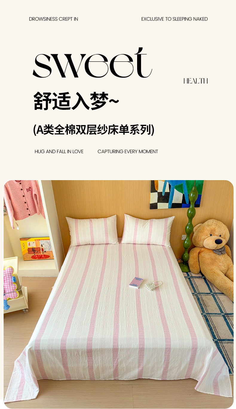 2025新款全棉双层纱单品床单床笠枕套-单床单 简爱粉