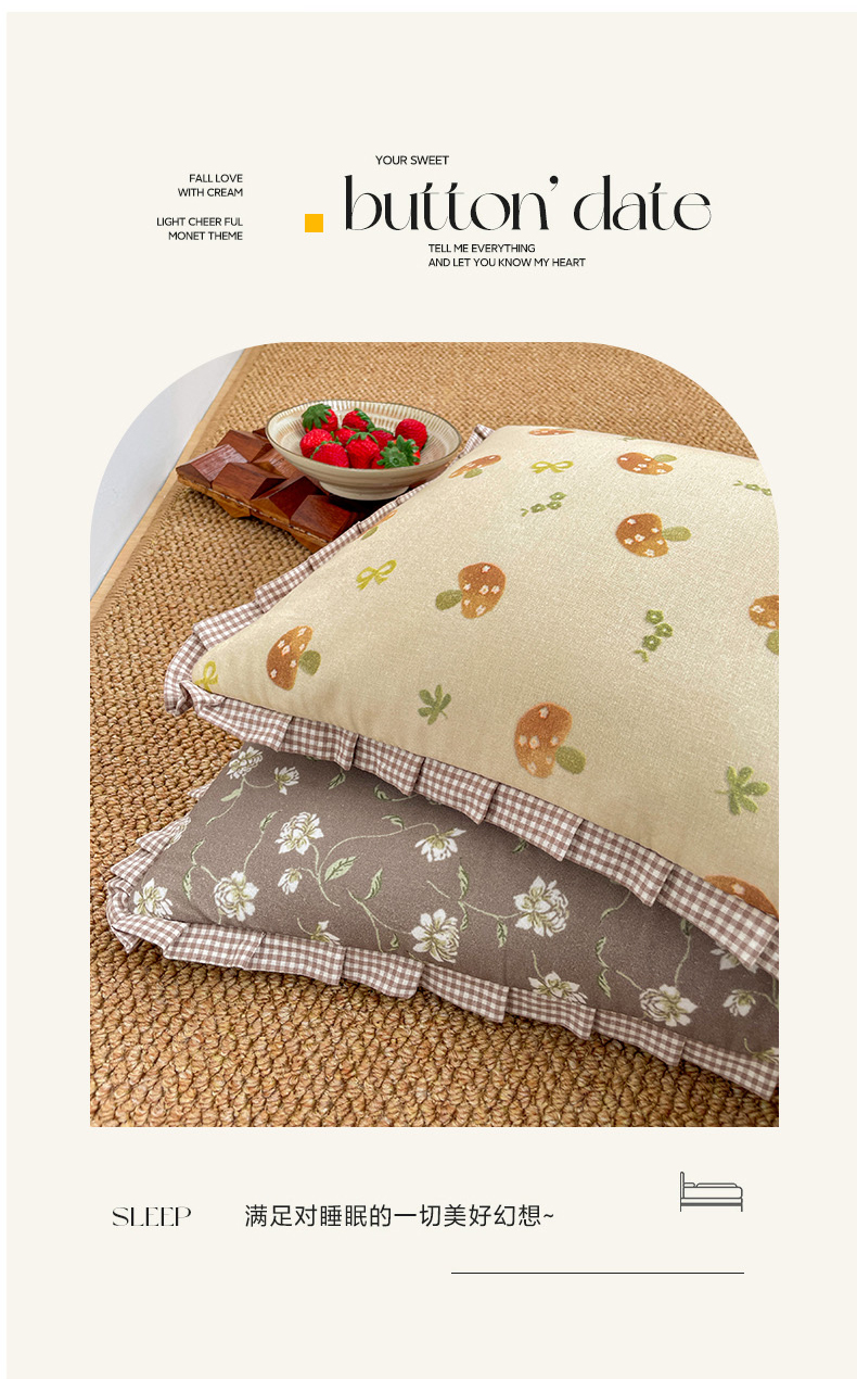 商品名称:卓昌枕芯 2025新款全棉纯棉双层纱花边可拆洗枕头双面可用荞麦枕羽丝绒枕头枕芯 花漾-全棉双层纱枕头 成人款40x60cm枕套加荞麦壳内胆