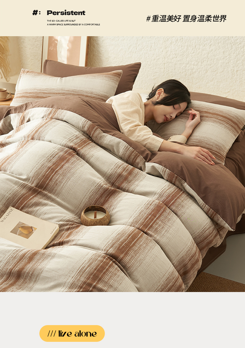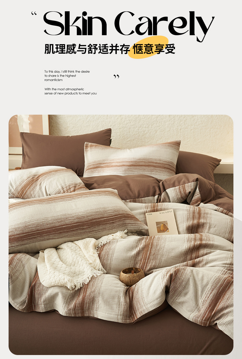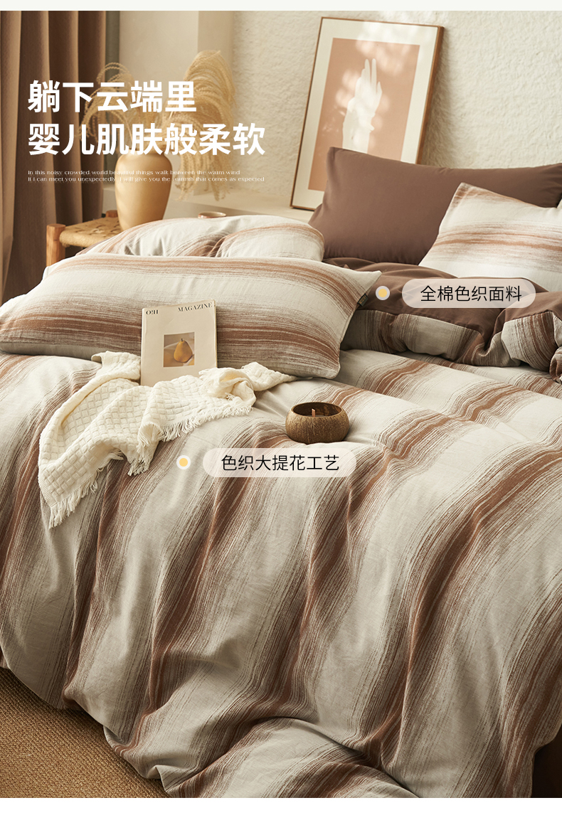 当前位置: 91家纺网 > 商品网购 > 床品套件 > 四件套 > 全棉普通四件套 > 趣色家纺2025新款高密织色织大提花全棉四件套 西雅-咖