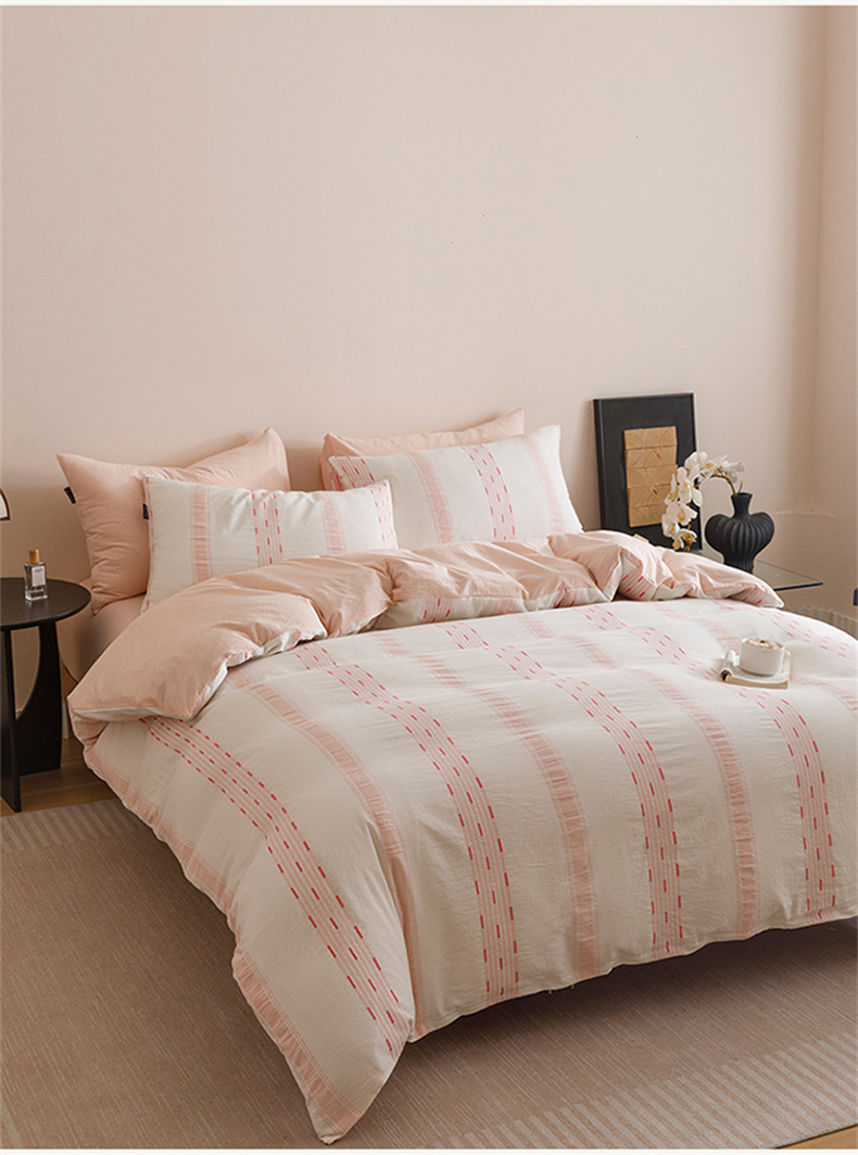 当前位置: 91家纺网 > 商品网购 > 床品套件 > 四件套 > 全棉普通四件套 > 趣色家纺2025新款高密织色织大提花全棉四件套 忆生活-粉