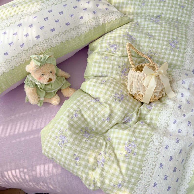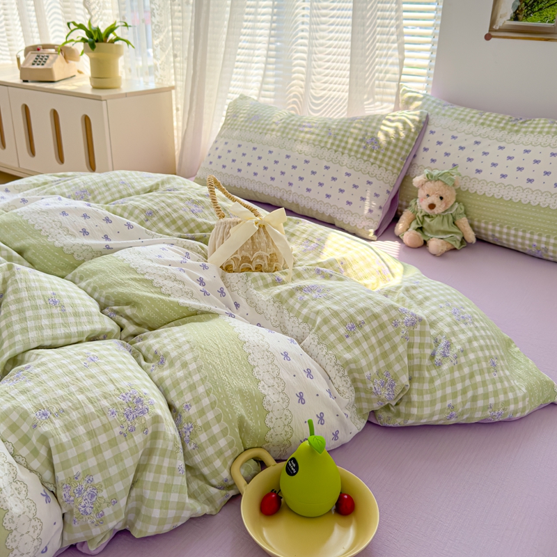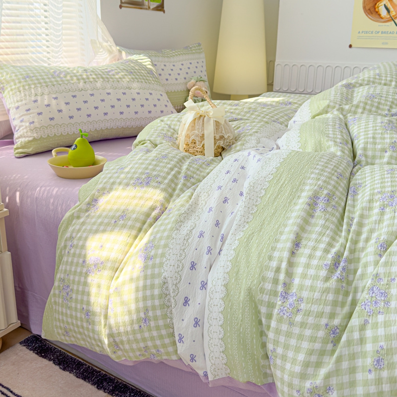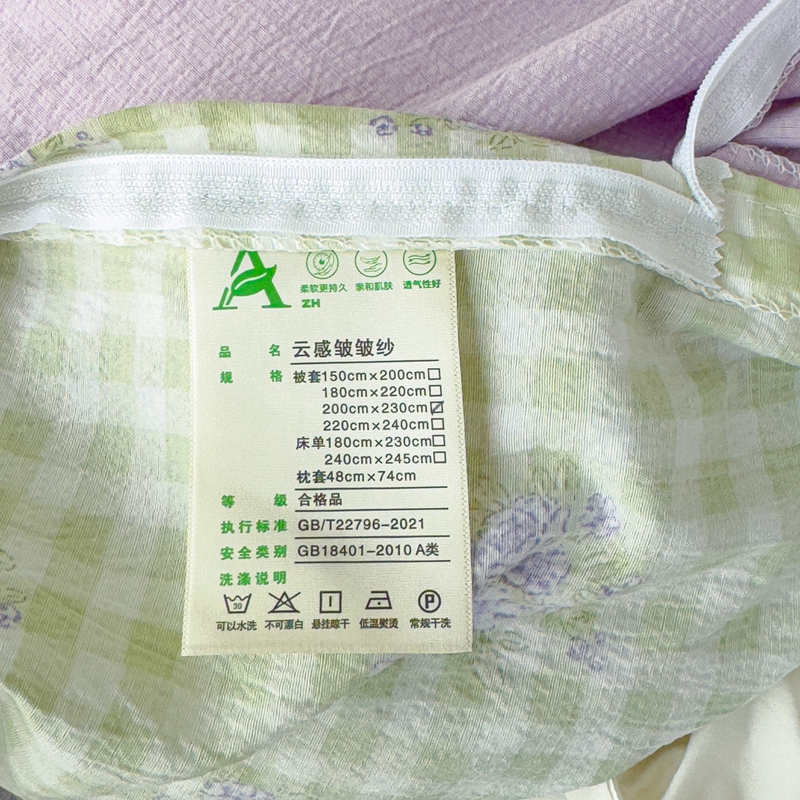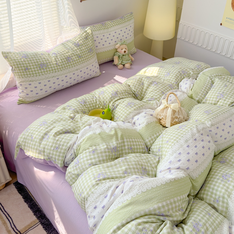 商品名称:竹合家纺 2025新品云感皱皱四件套跑量款小清新四件套 梦境-绿