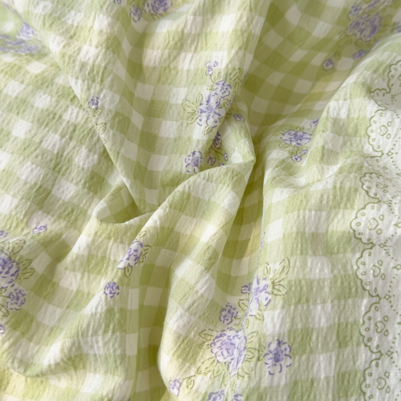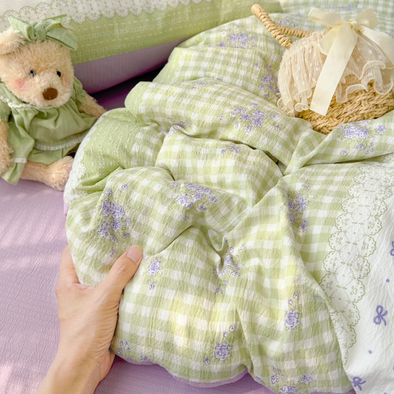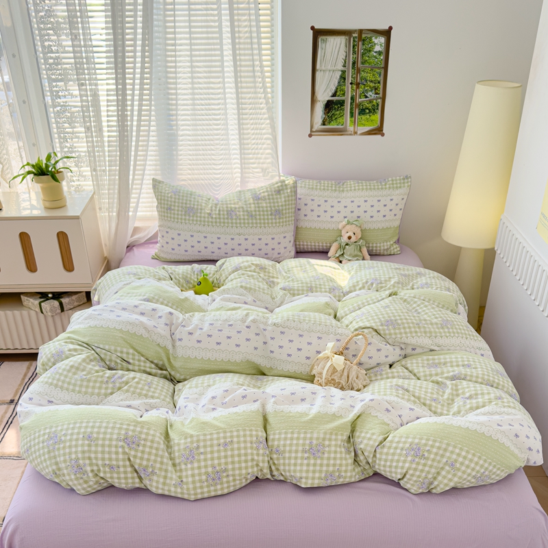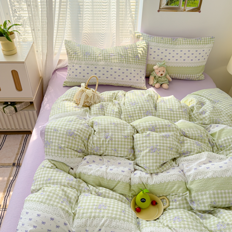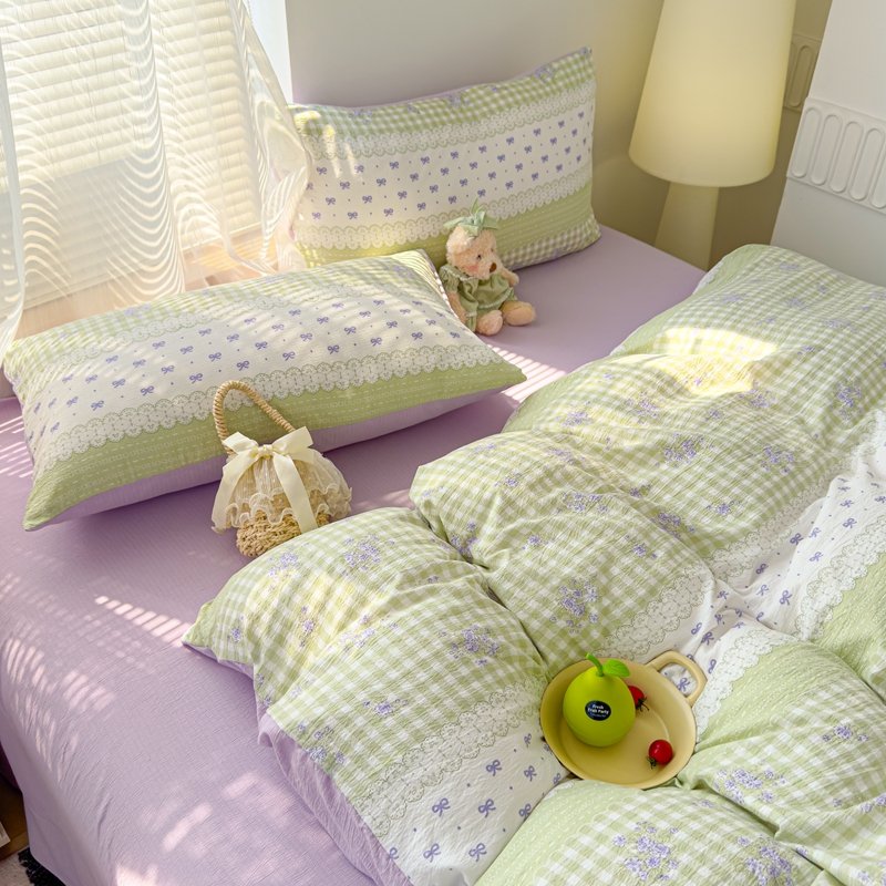 商品名称:竹合家纺 2025新品云感皱皱四件套跑量款小清新四件套 梦境-绿