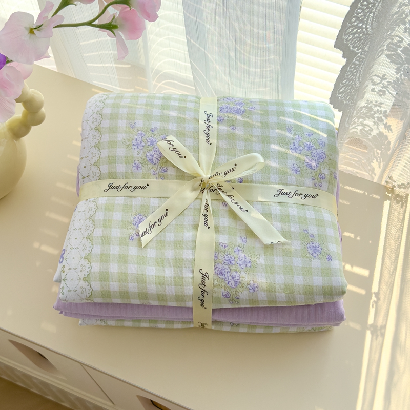 竹合家纺 2025新品云感皱皱四件套跑量款小清新四件套 梦境-绿