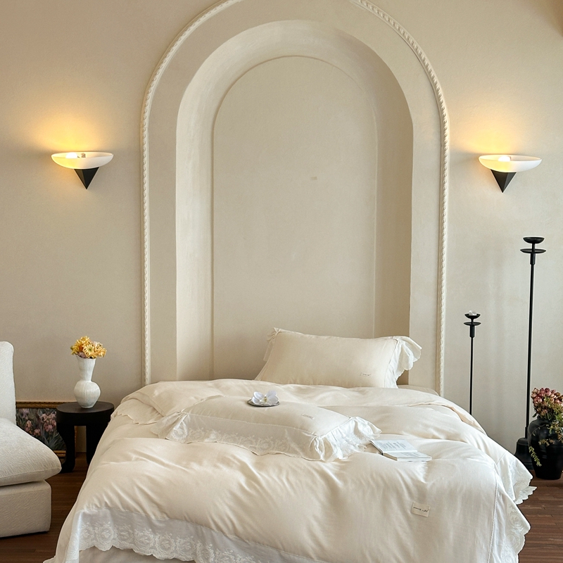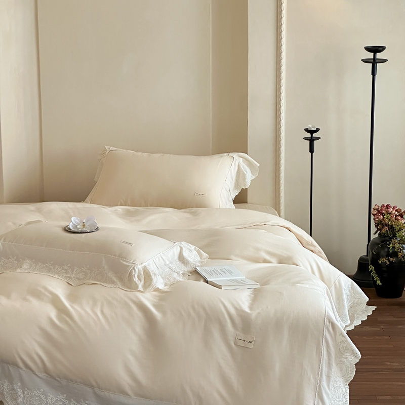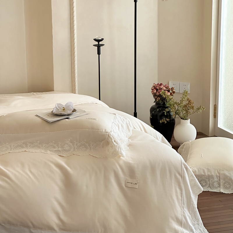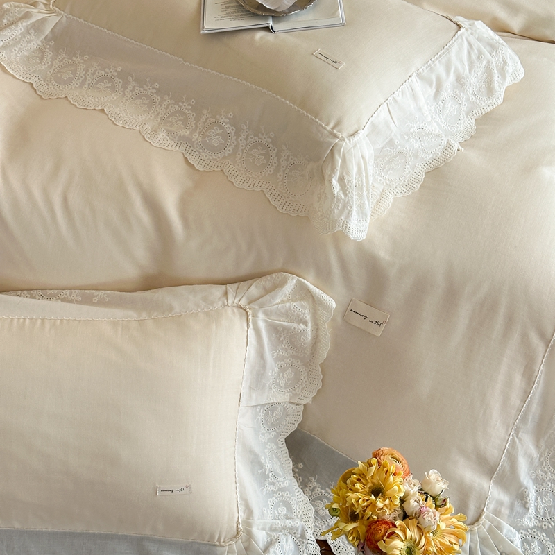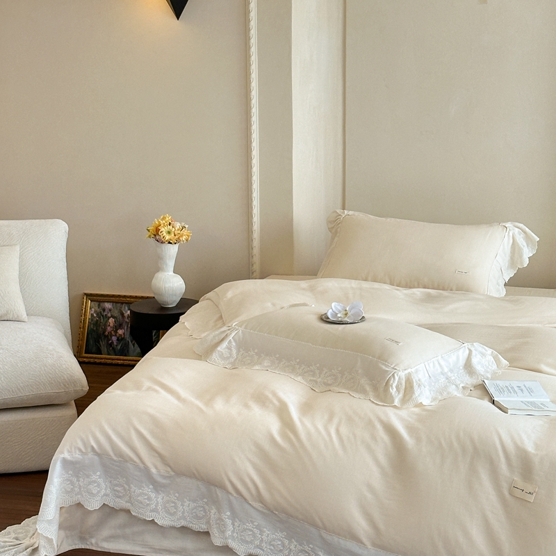 商品名称:小春日和 2025新款法式纯棉双层纱A类公主风四件套儿童婴幼儿被套纯色床单1.8床笠加大床单 象牙白