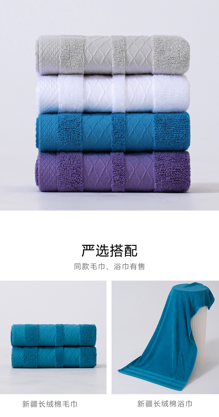 商品名称:彩虹毛巾2025新款菱形格全棉加厚毛巾纯棉毛巾浴巾套装跨境外贸产品长绒棉毛巾浴巾套装 菱形格毛巾浴巾套装-深蓝