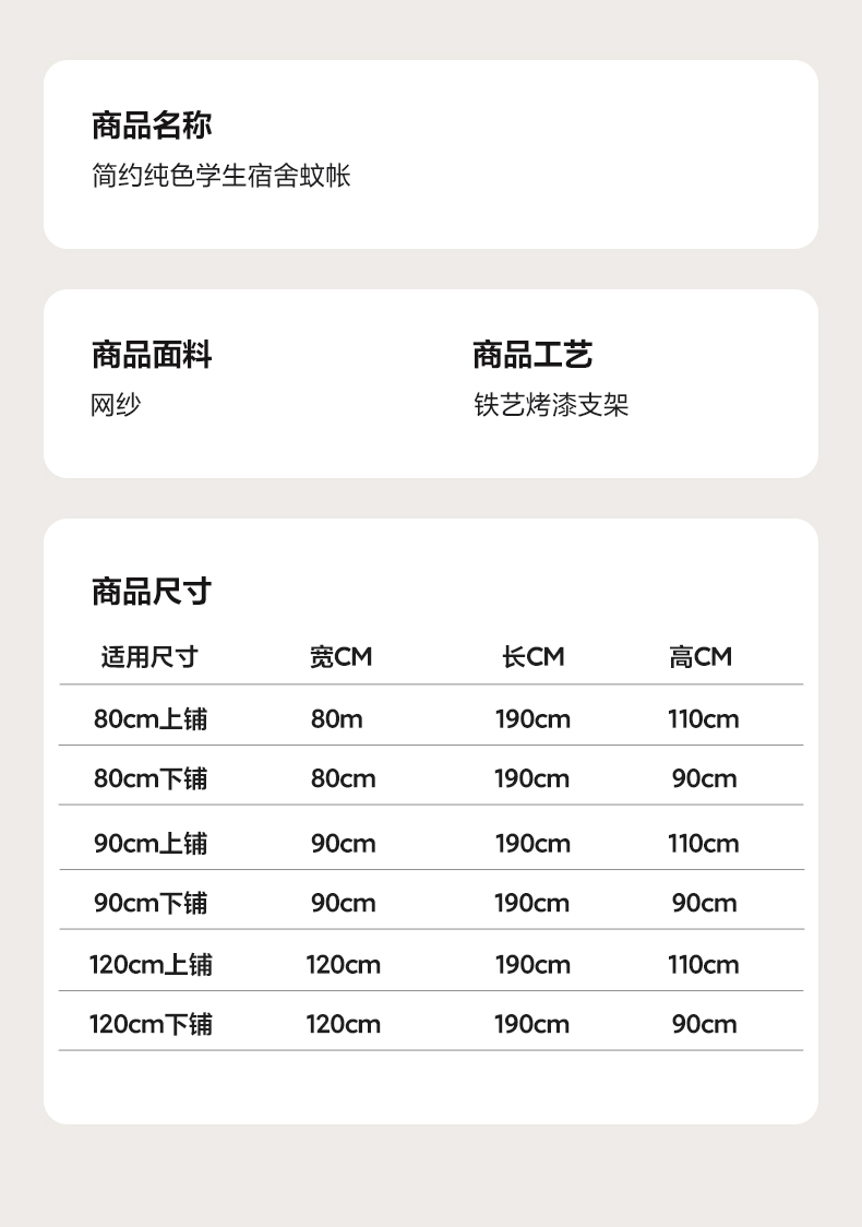 3开门0.9m上铺单纱 | ¥24.00 |