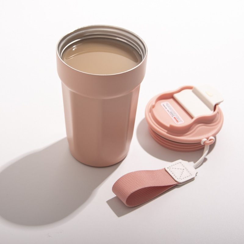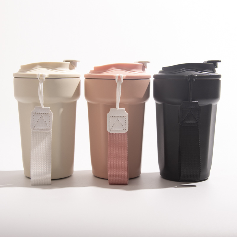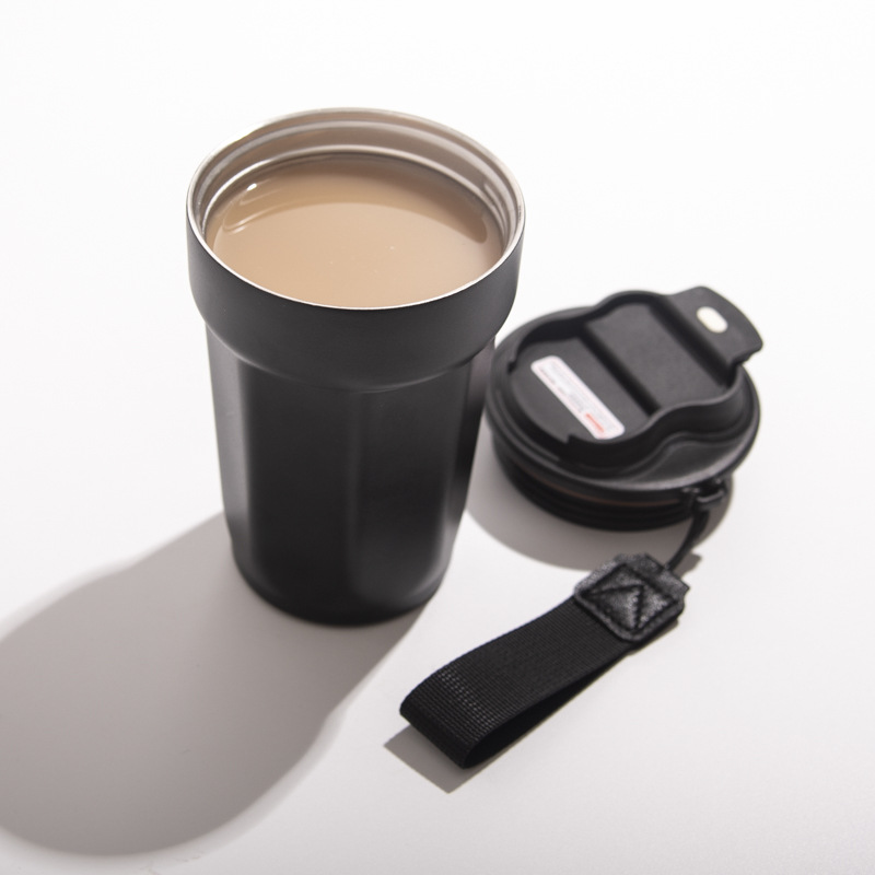 商品名称:【双层咖啡杯】2025新款日式无印双层咖啡杯良品不锈钢保温杯提绳运动休闲杯子双层真空杯