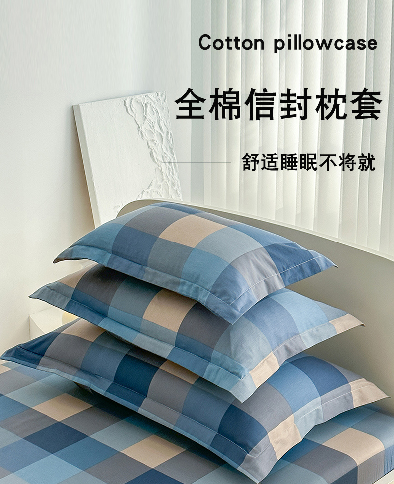 商品名称:凌云2025新款13372全棉枕套儿童学生成人枕头套 灰蓝格