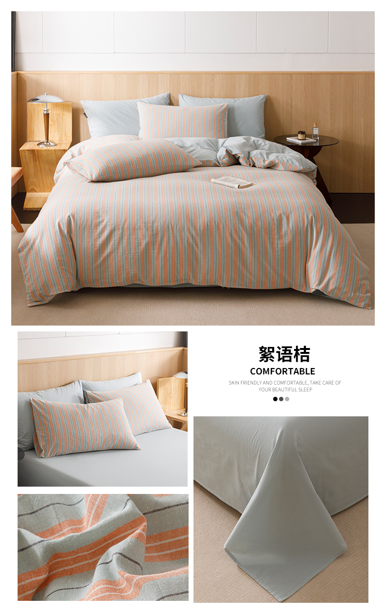当前位置: 91家纺网 > 商品网购 > 床品套件 > 四件套 > 全棉普通四件套 > 恬思语2025新款全棉色织水洗棉四件套 絮语桔