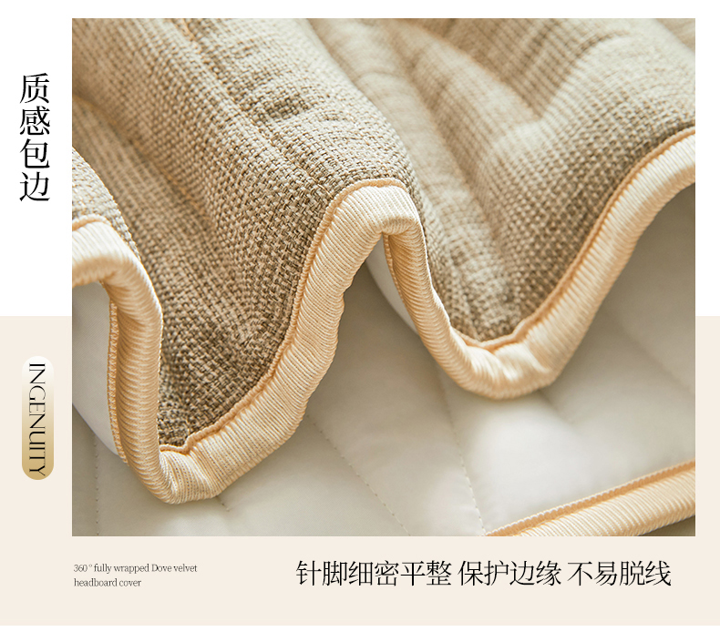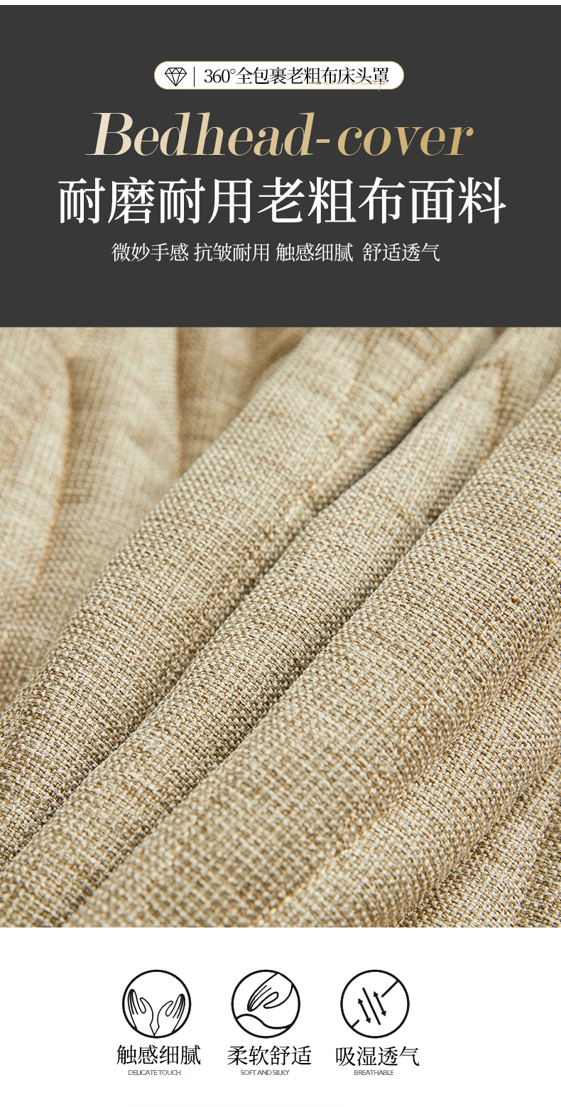 情恒家纺 2025新款老粗布加厚双面可用全包床头罩 老粗布-茶色咖