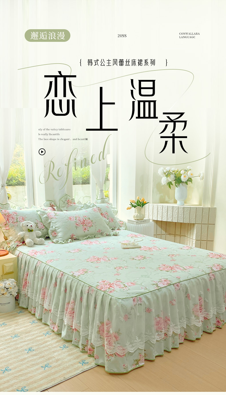 当前位置: 91家纺网 > 商品网购 > 床上用品 > 床裙 > 雨彤家纺 2025新款高克重韩式公主风亲肤斜纹床裙单品床裙床裙单件 莱茵花畔-公主风