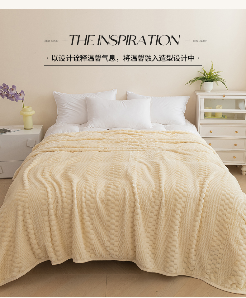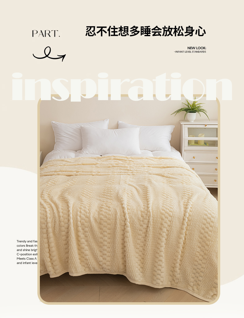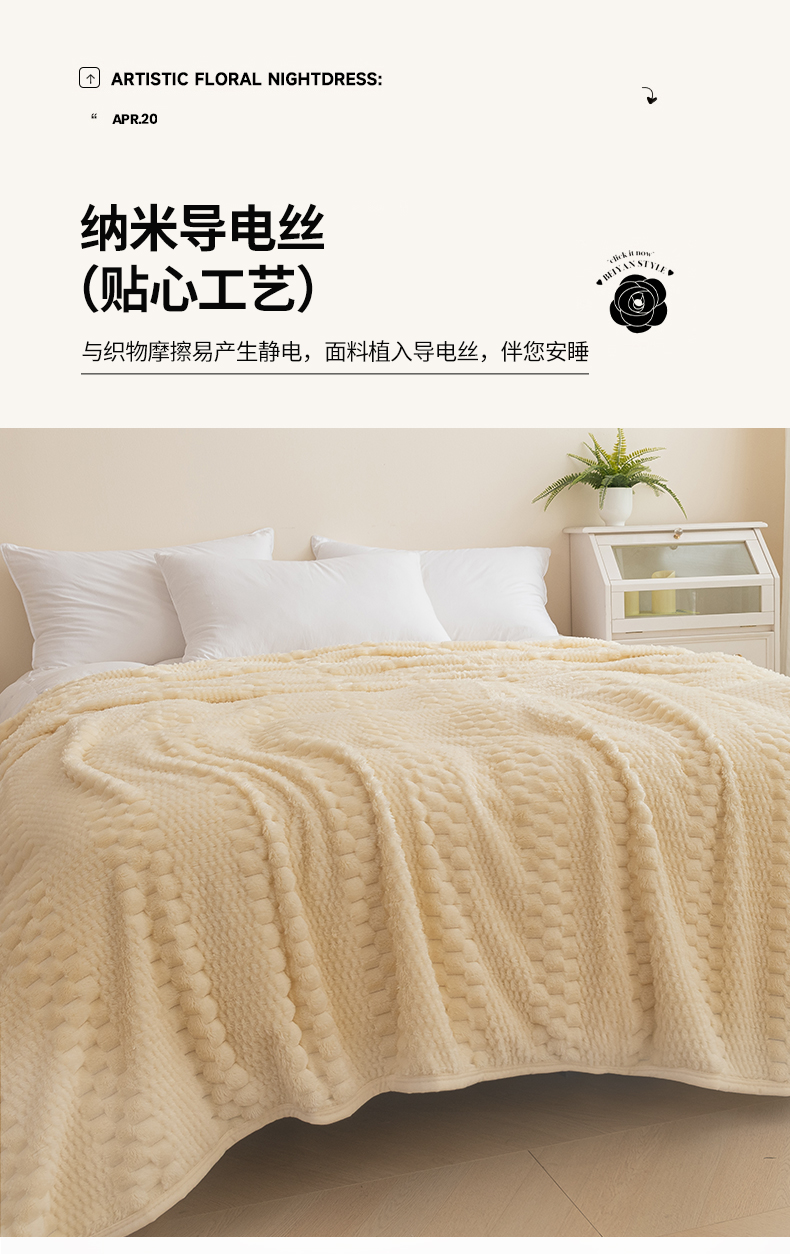 胜百毛毯2025新款素色200克法兰绒毯 米棕,米棕