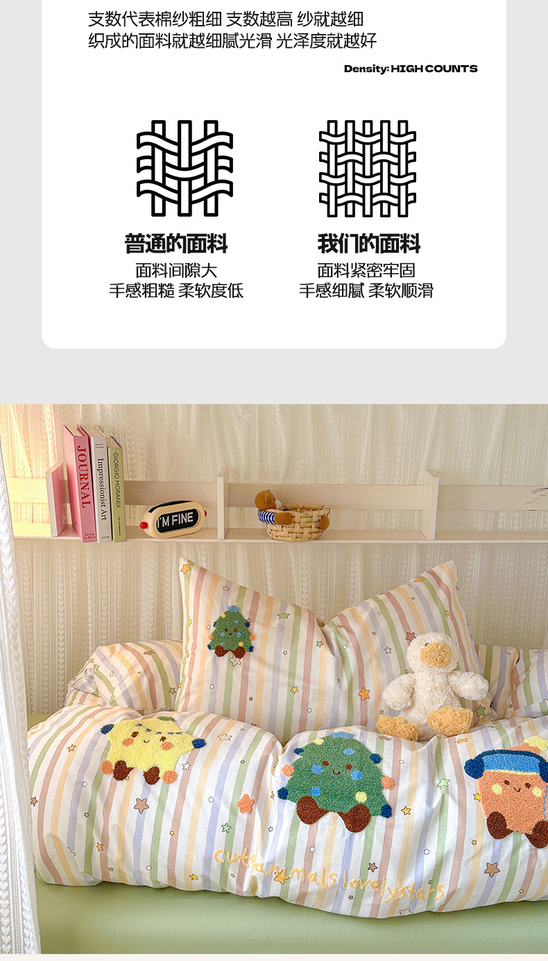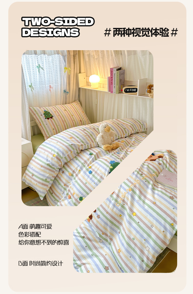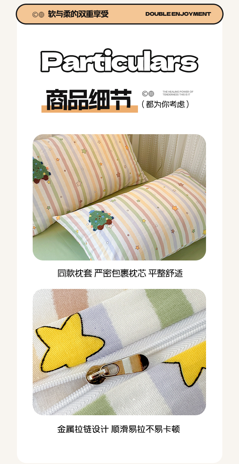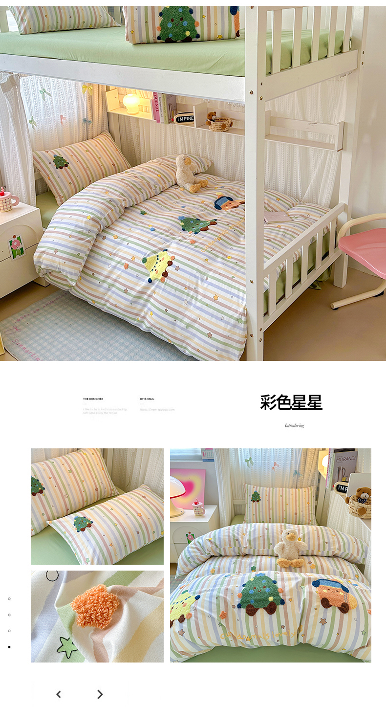 当前位置: 91家纺网 > 商品网购 > 床品套件 > 四件套 > 全棉普通四件套 > 如意朵 2025新款全棉小清新绣花学生季三四件套 彩色星星