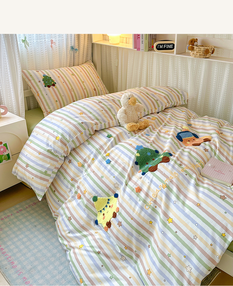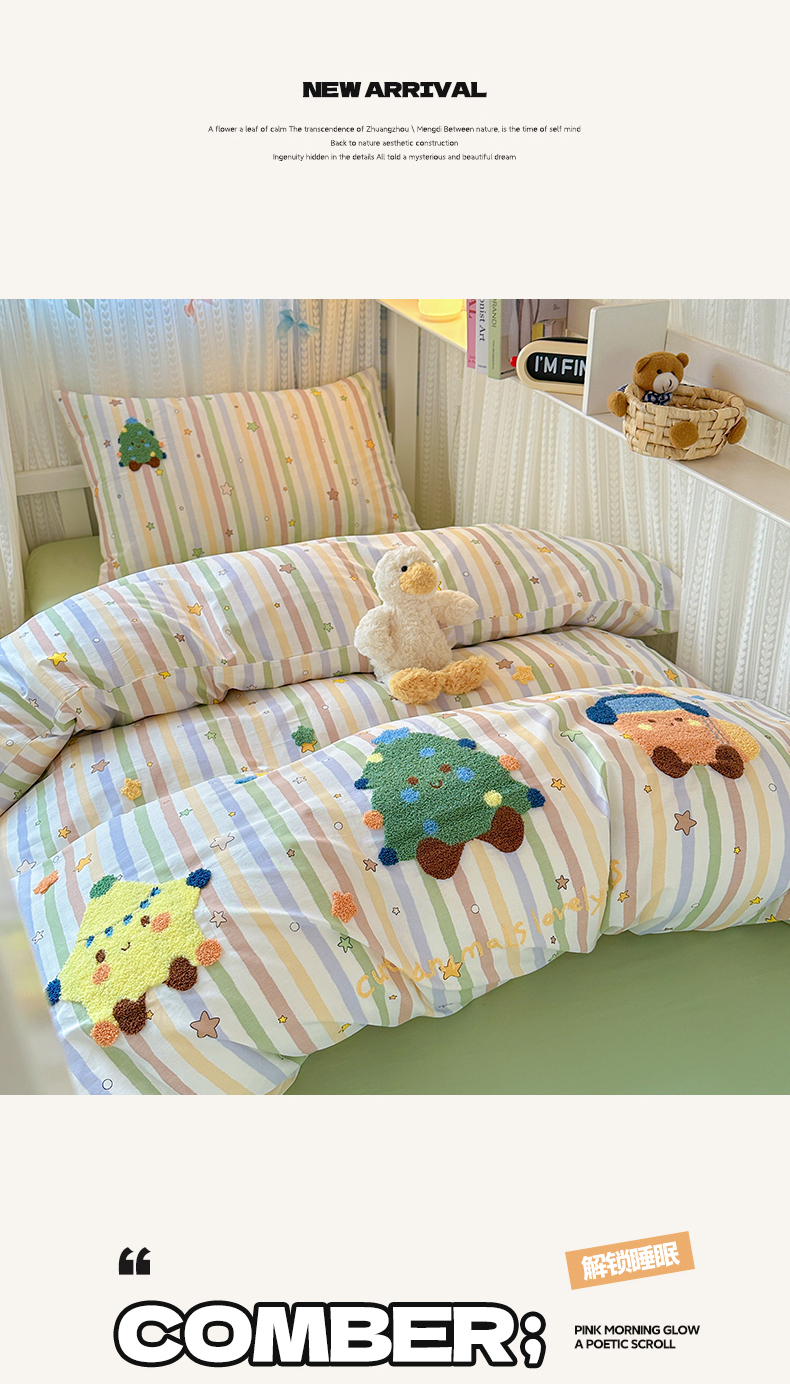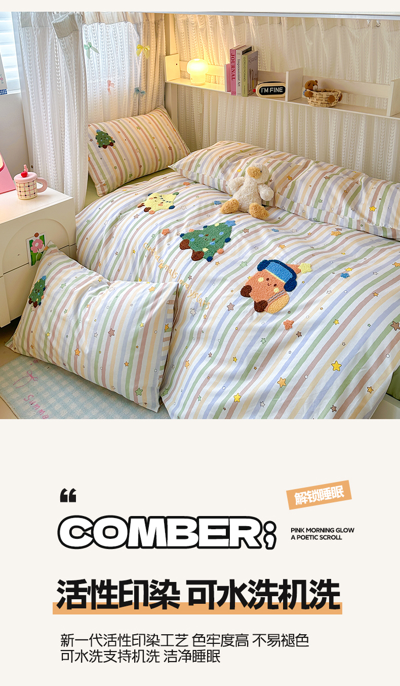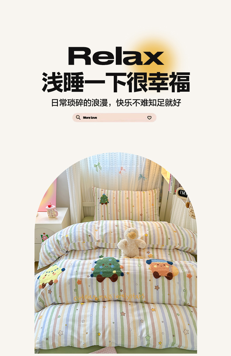 当前位置: 91家纺网 > 商品网购 > 床品套件 > 四件套 > 全棉普通四件套 > 如意朵 2025新款全棉小清新绣花学生季三四件套 彩色星星