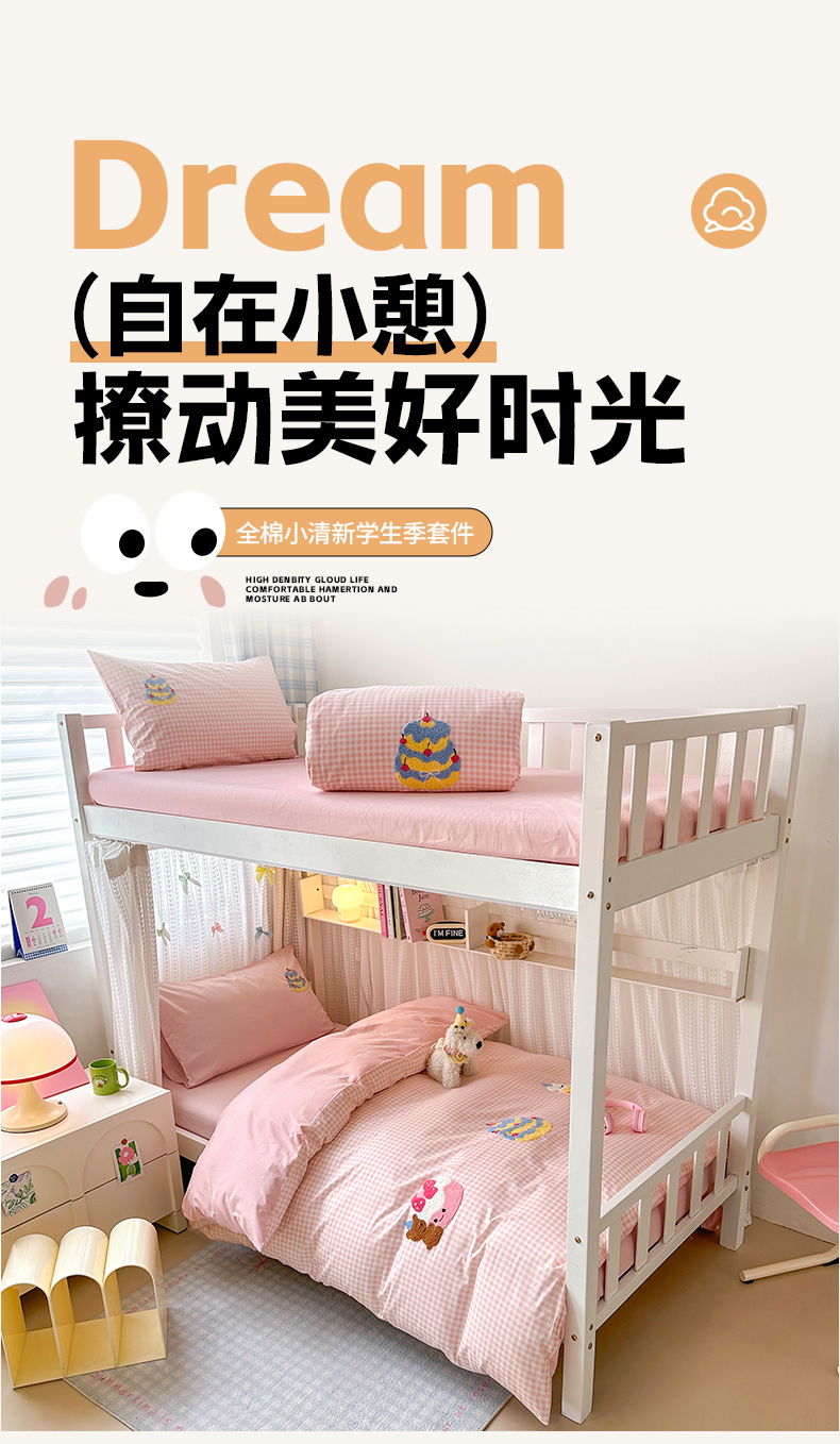 当前位置: 91家纺网 > 商品网购 > 床品套件 > 四件套 > 全棉普通四件套 > 如意朵 2025新款全棉小清新绣花学生季三四件套 小甜品