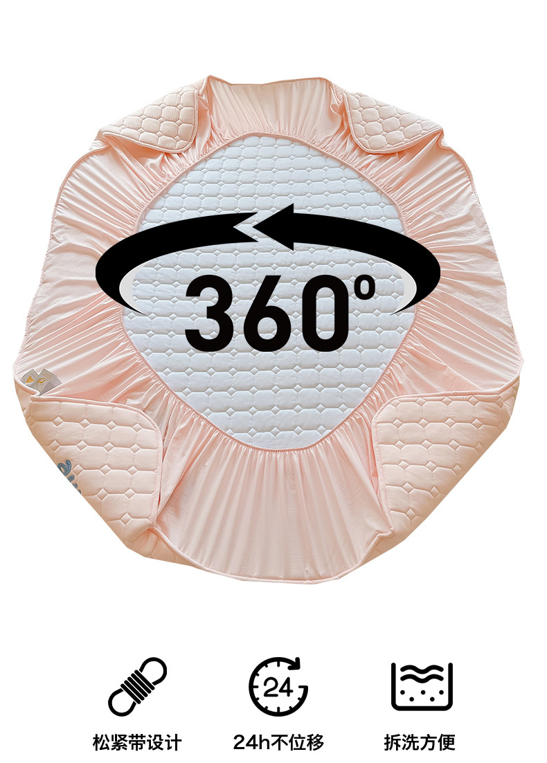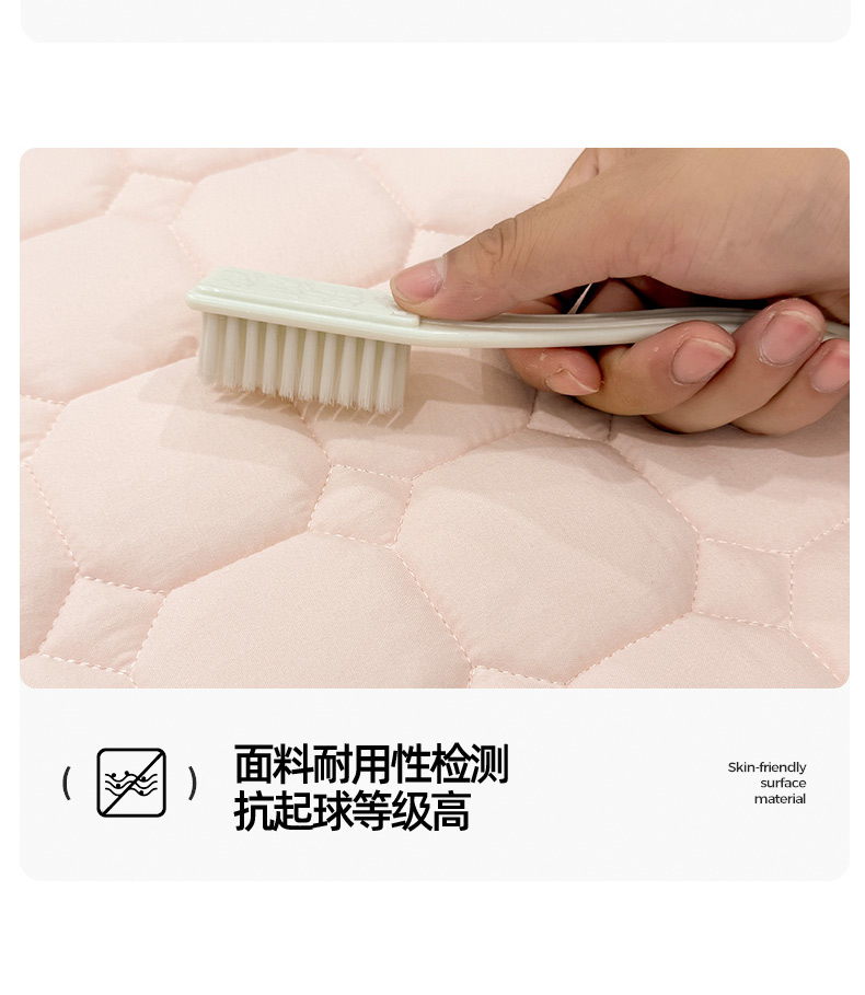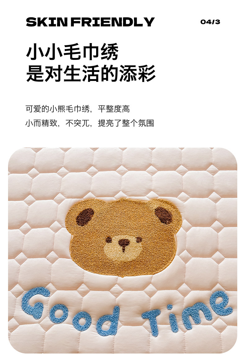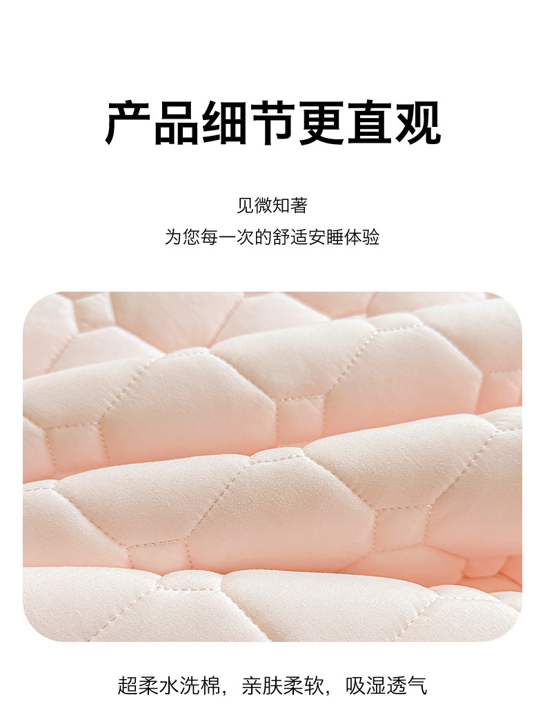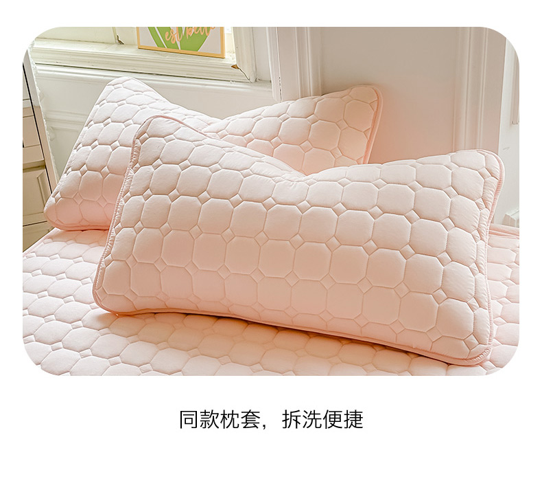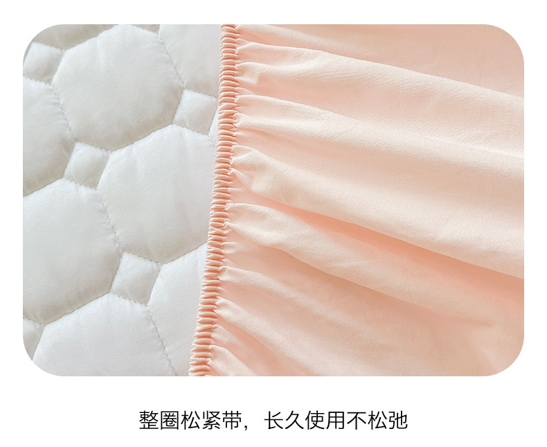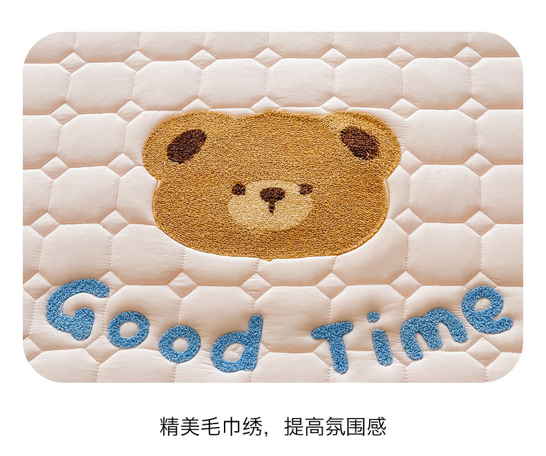 • 91家纺网 家纺一手货源 找家纺 雯豆家纺 2025新品刺绣款毛巾绣夹棉床笠三件套纯色素色床护垫保护套 笨笨熊-密合粉