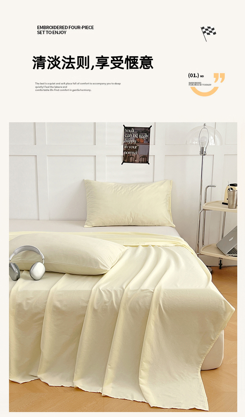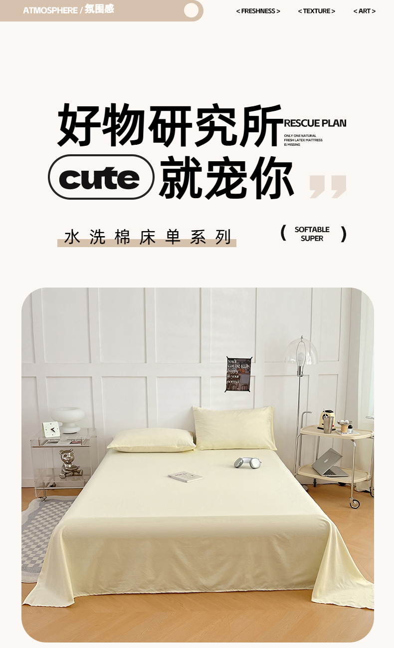 卡迪熊家纺2025新款水洗m床单 奶黄