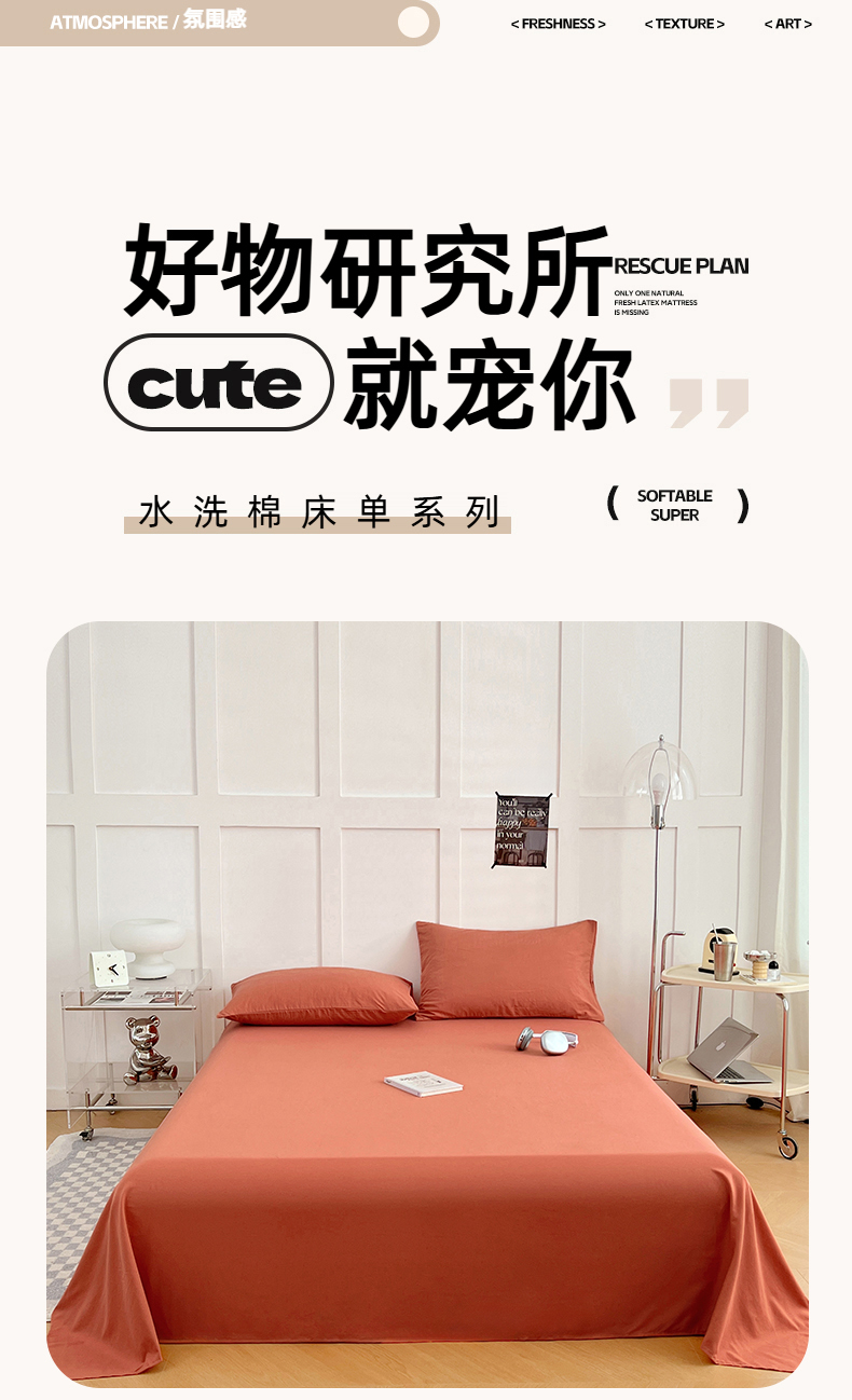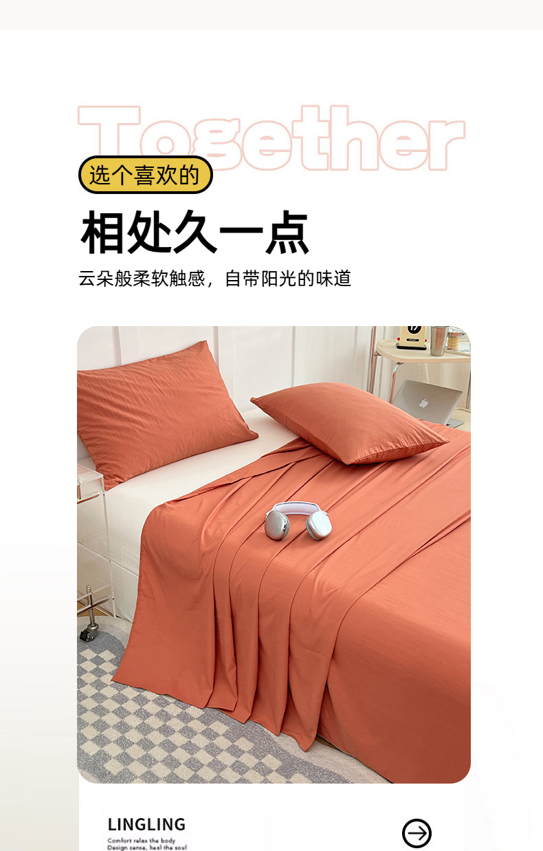彩韵家纺 2025新款柔软云感水洗m床单系列 落日橙