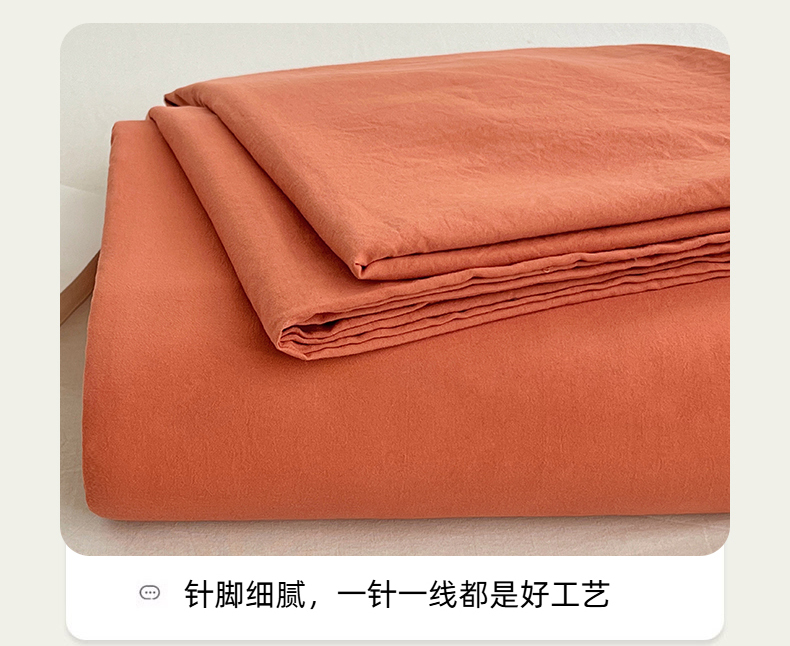 • 91家纺网 家纺一手货源 找家纺 彩韵家纺 2025新款柔软云感水洗m床单系列 落日橙