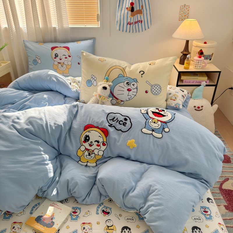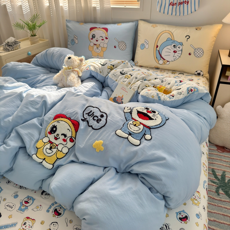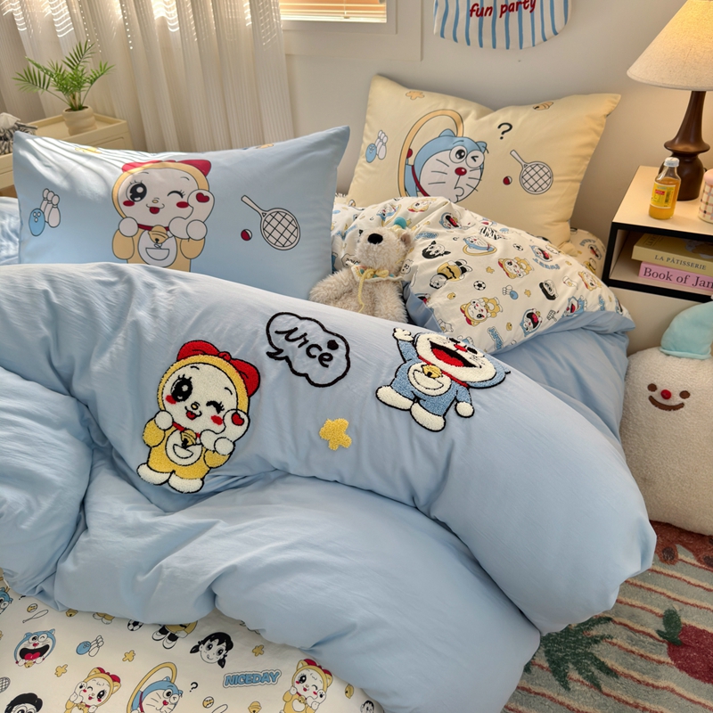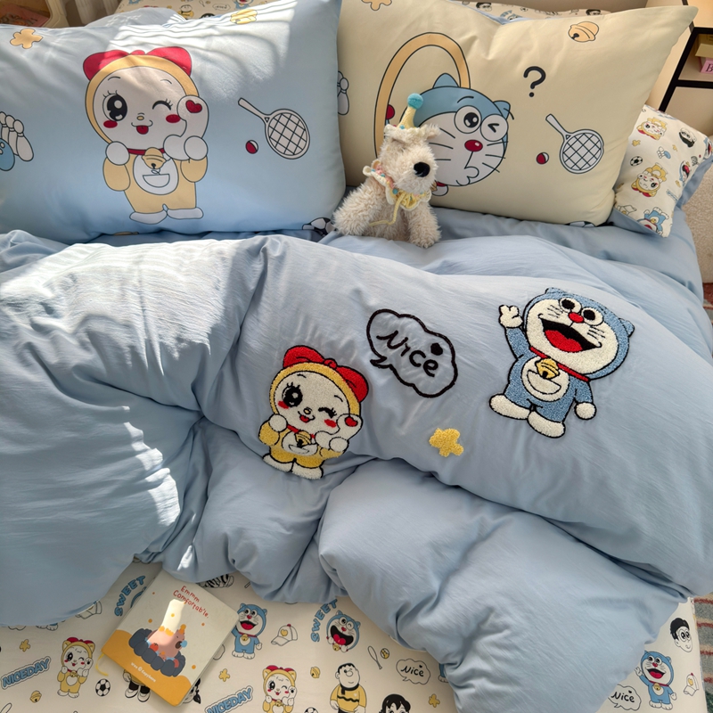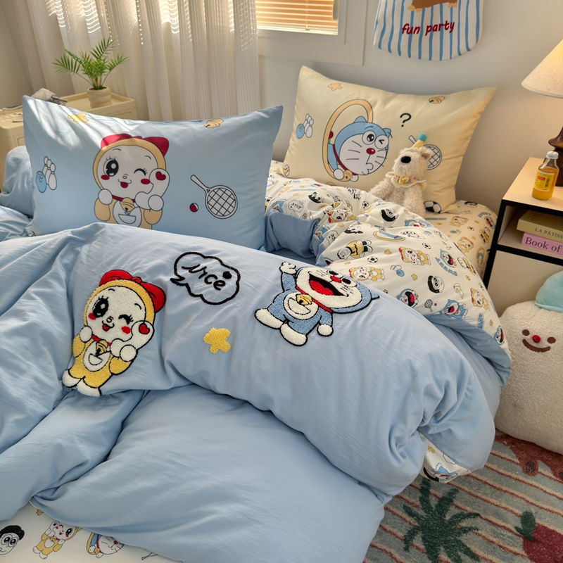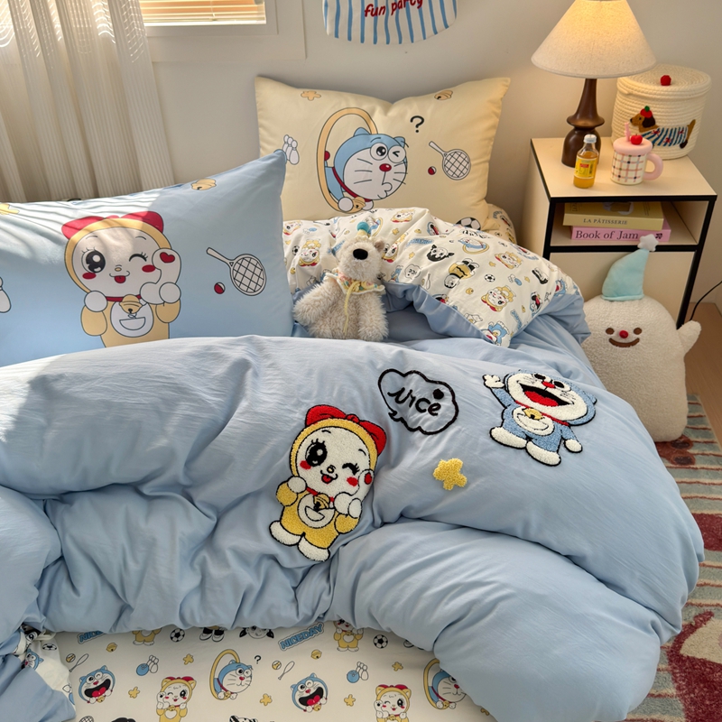 一霖家纺 2025新款高克重云朵棉数码印花+毛巾绣四件套萌萌小叮当